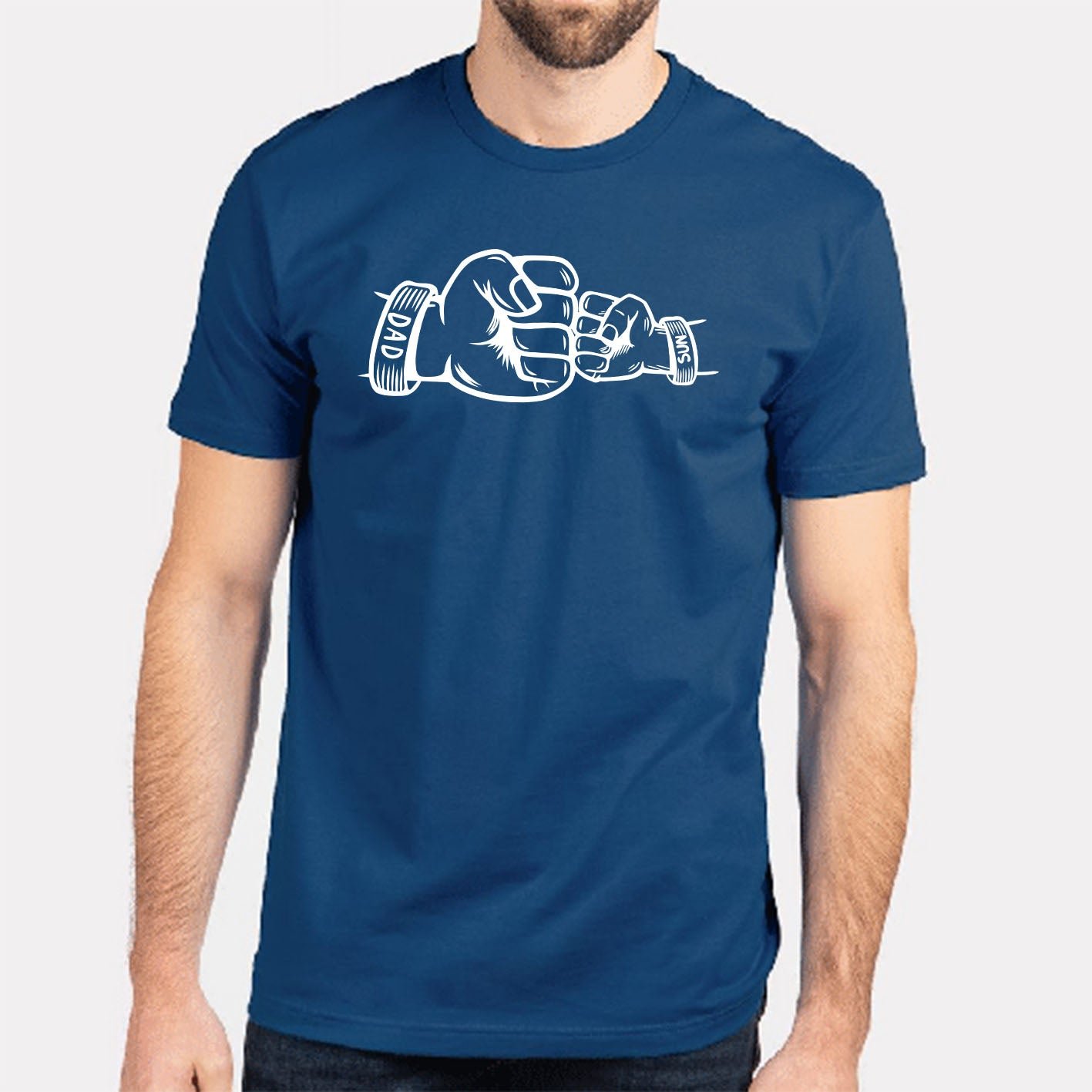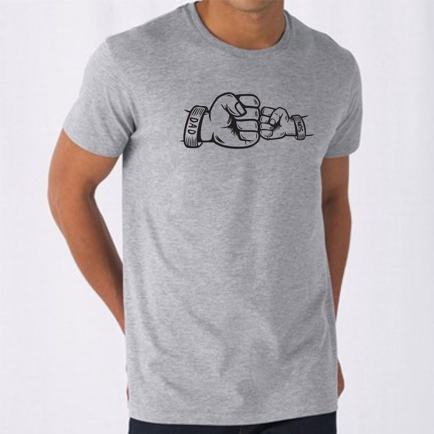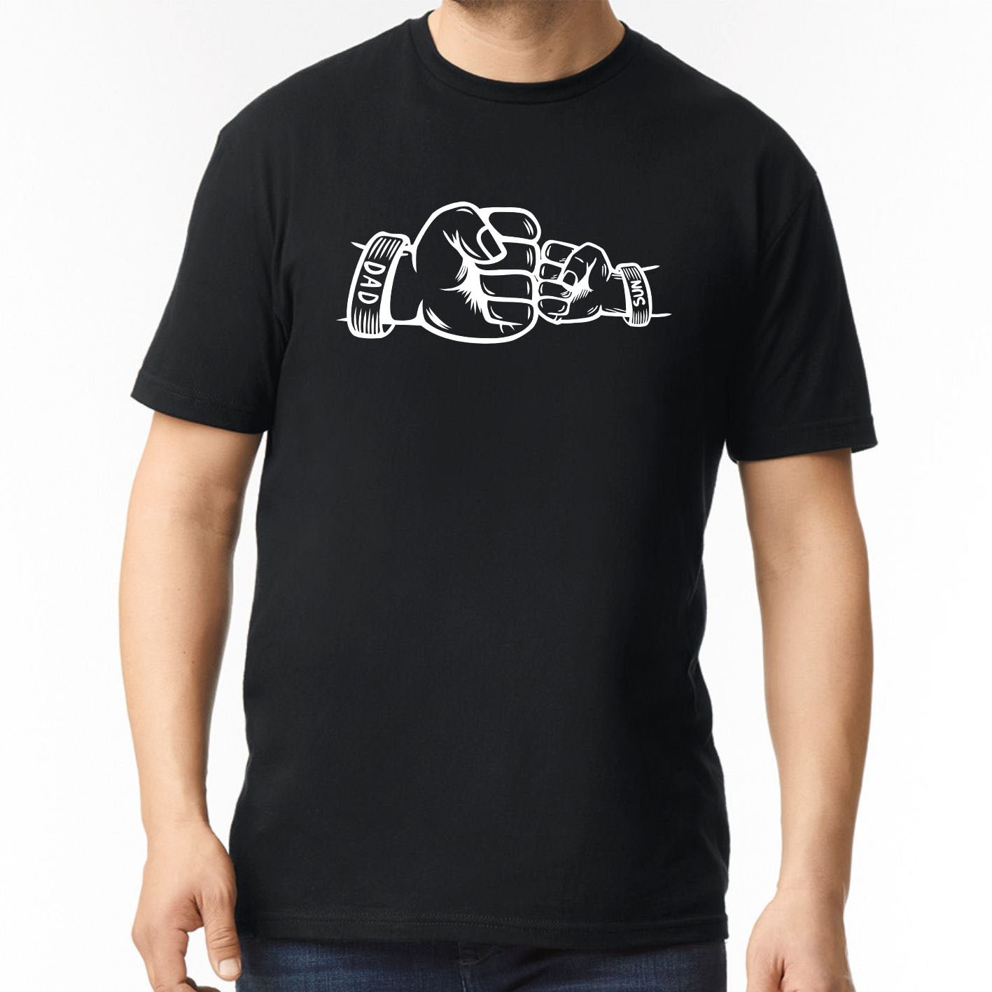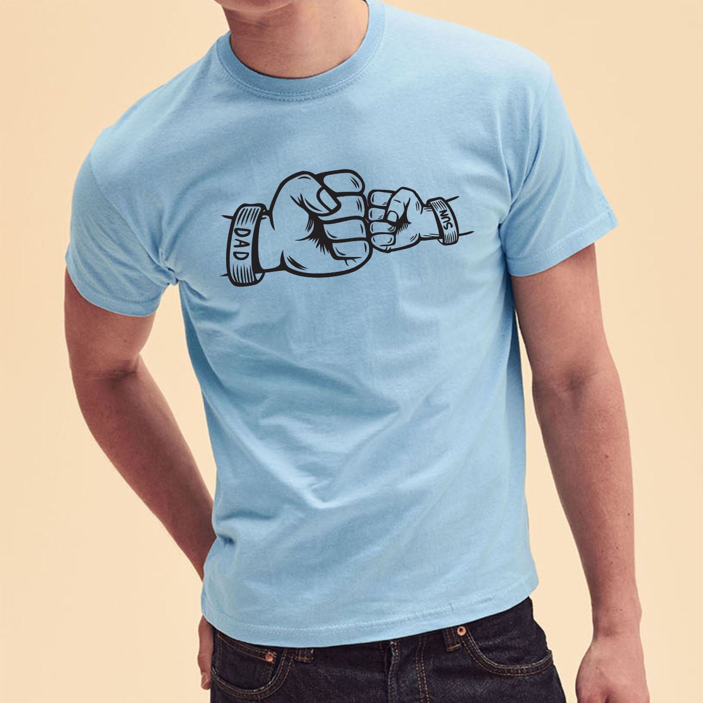 Fist Bump Dad and Son Custom Name Short Sleeve Fathers Day T-Shirt