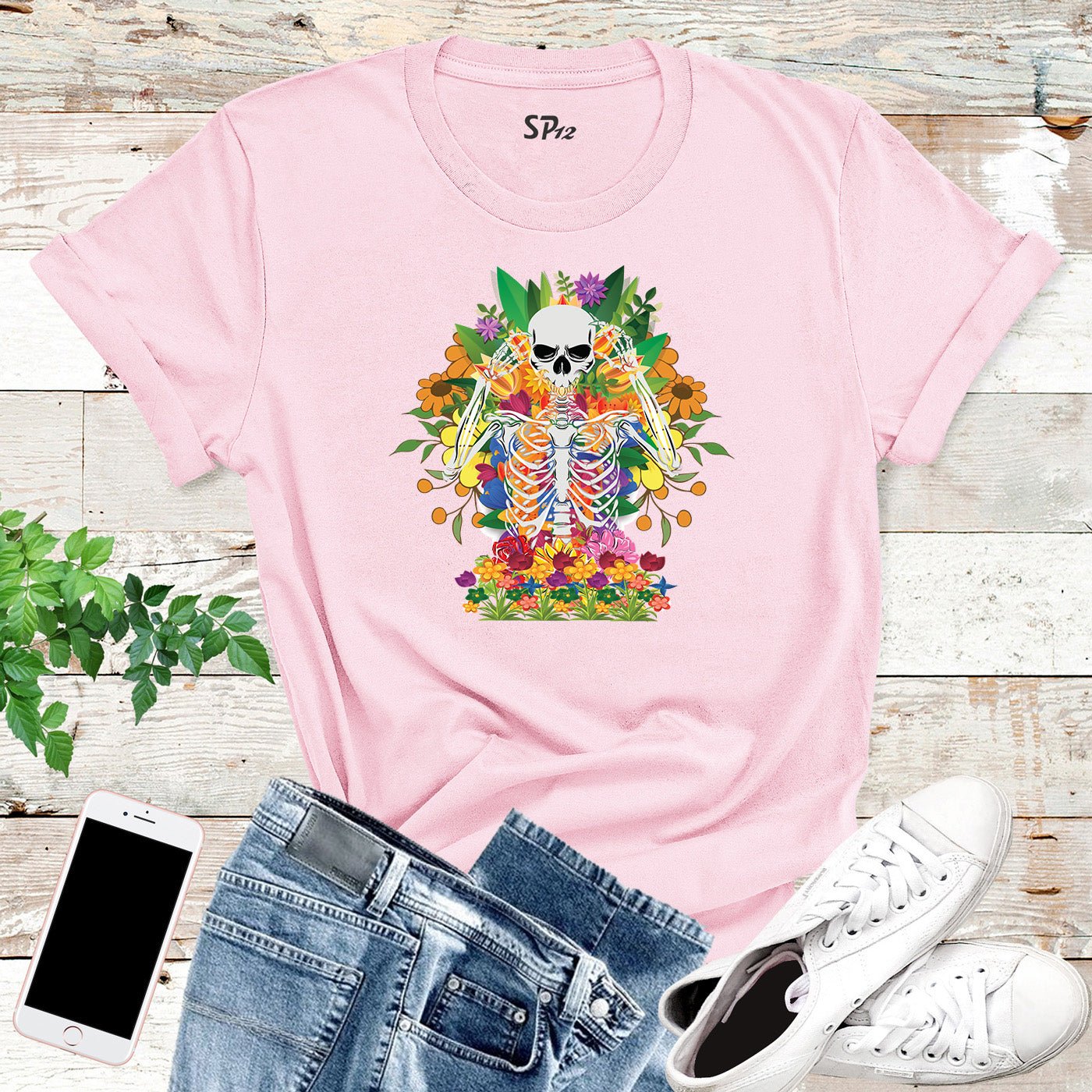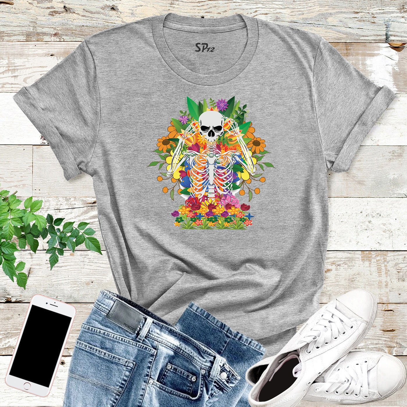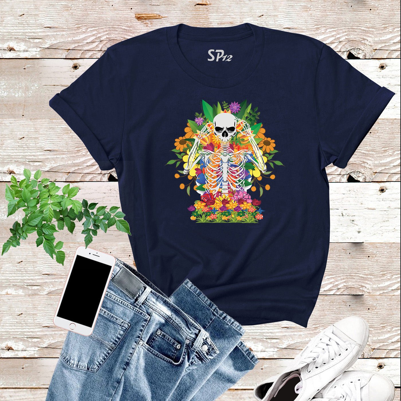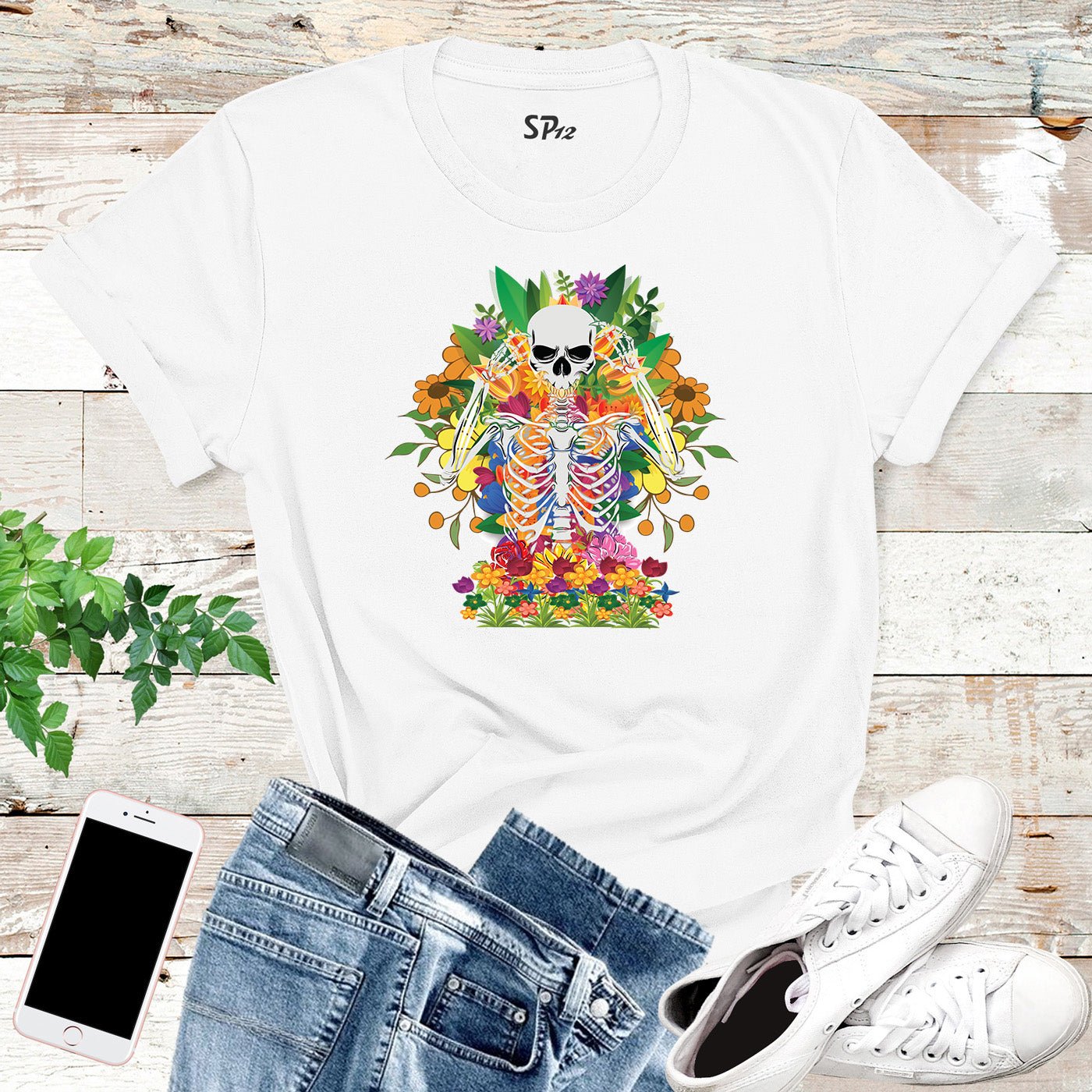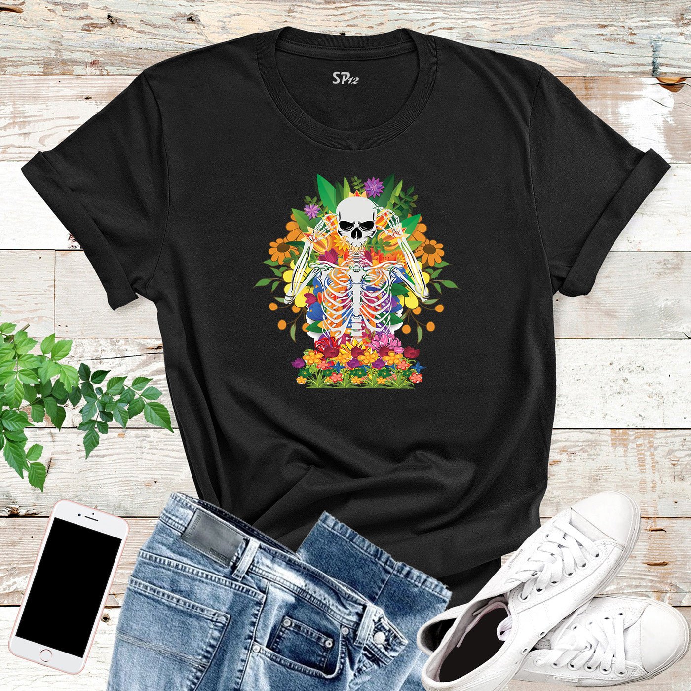 Floral Flower Skeleton Custom Witchy Botanical Vintage Halloween Gobblincore Graphic T-Shirt