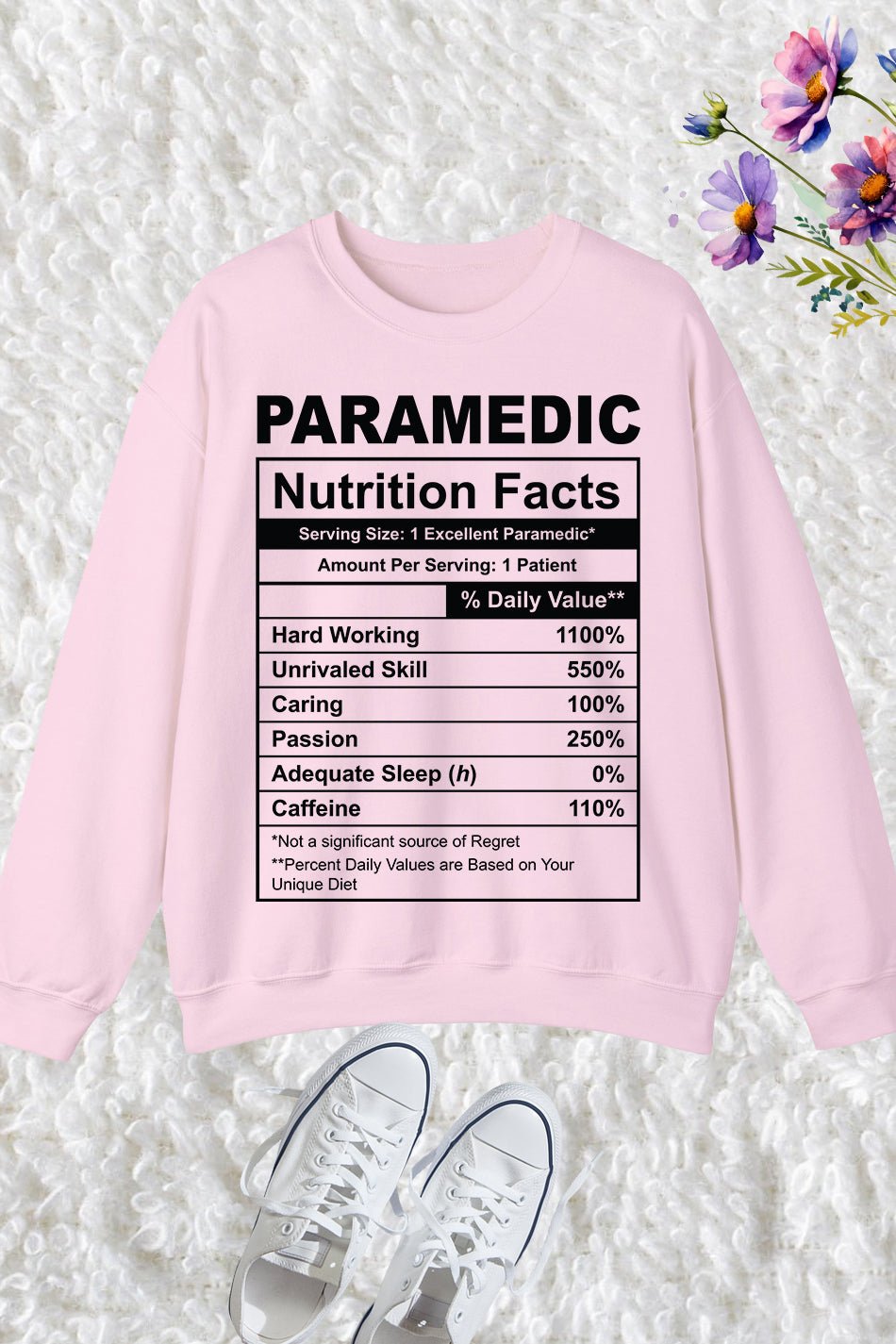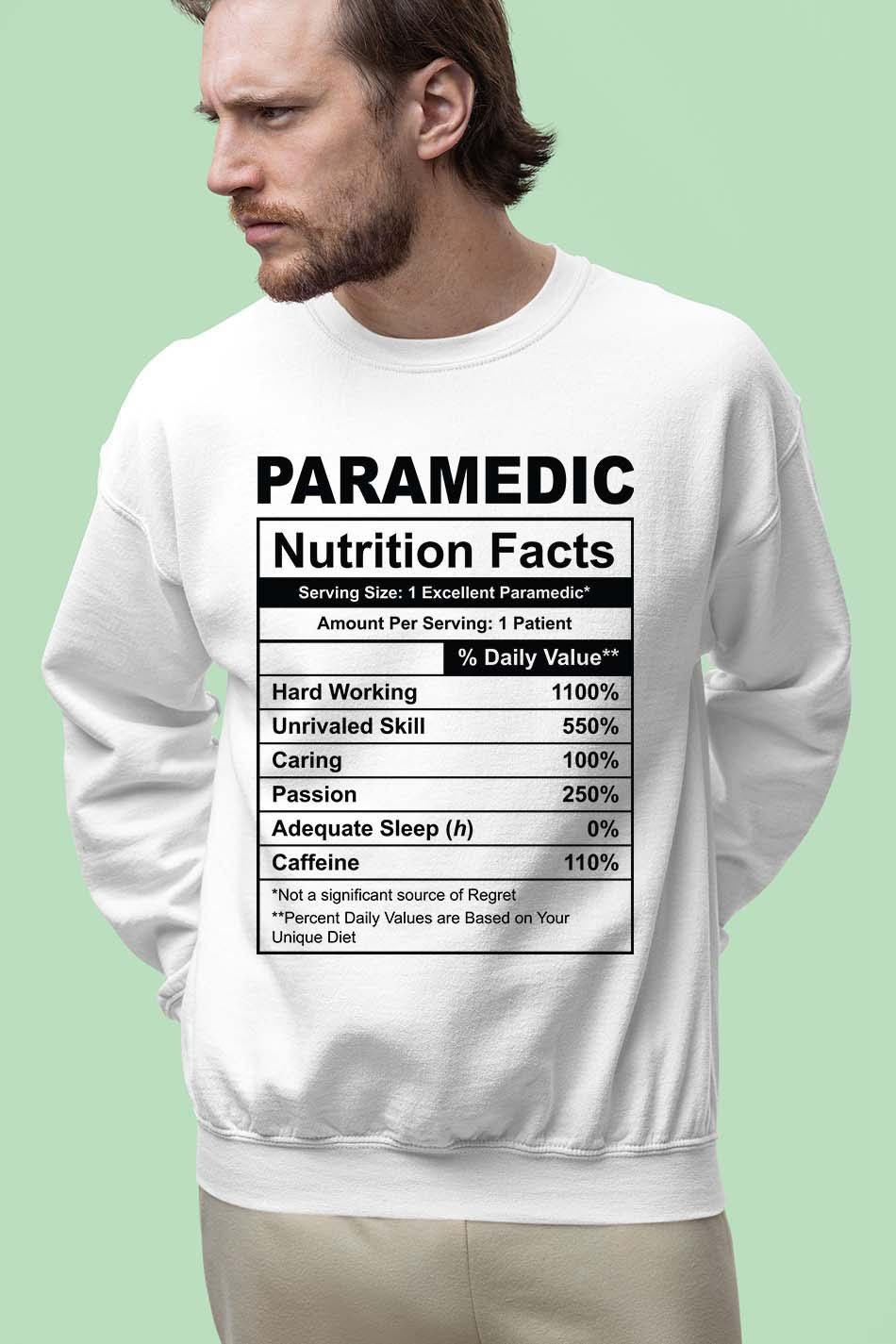 Get ready to make your colleagues and patients laugh with this Funny Paramedic Nutrition Facts Sweatshirt! Show off your expertise in style with this comfortable and unique sweatshirt. Made with high-quality materials, this sweatshirt makes a great gift for any paramedics in your life.