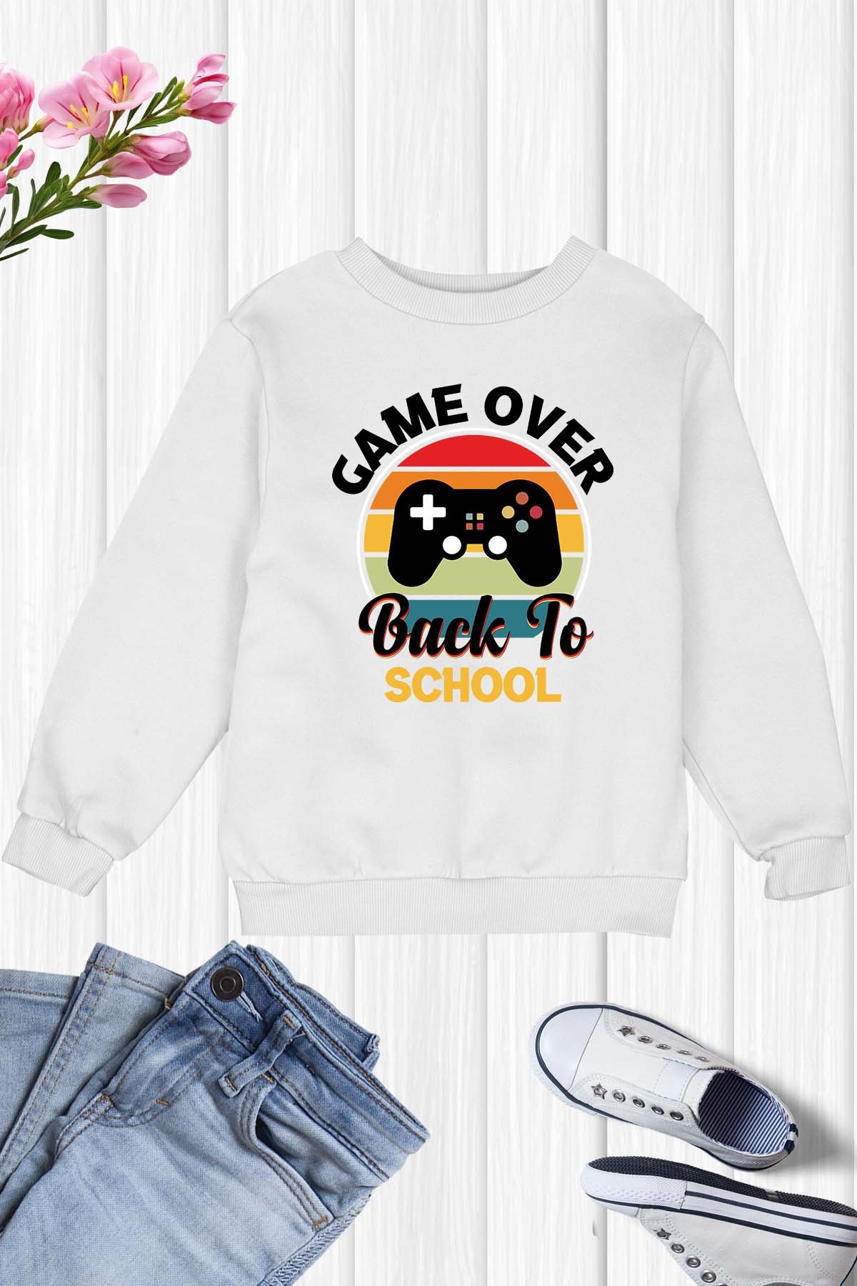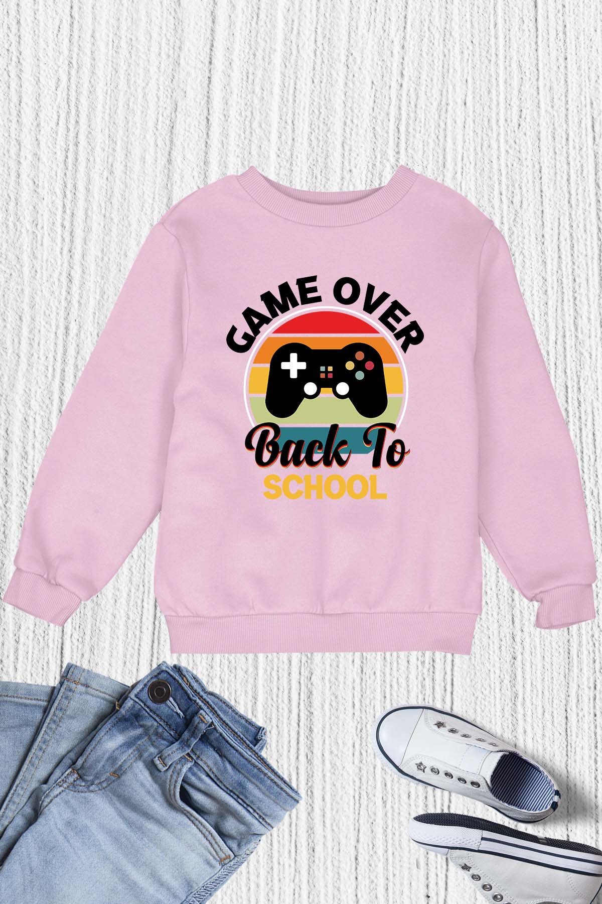 Stay in style with our Game Over back To School Sweatshirt. Made with high-quality materials, this sweatshirt is perfect for your back-to-school look. Stay comfortable and on-trend with this must-have addition to your wardrobe!