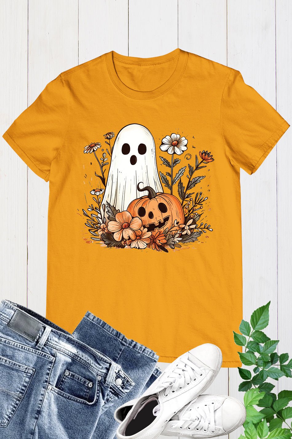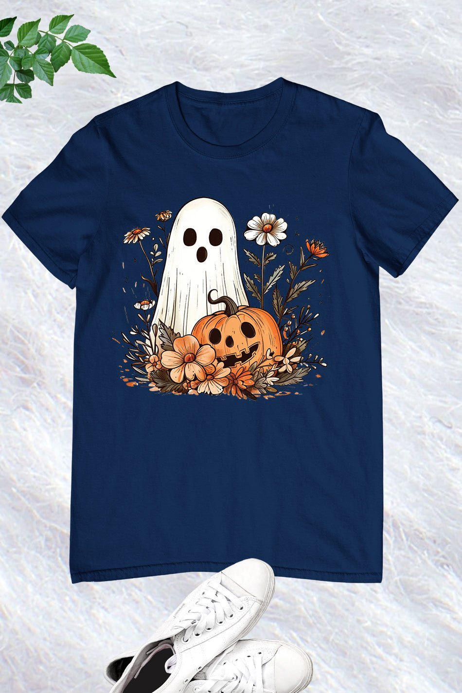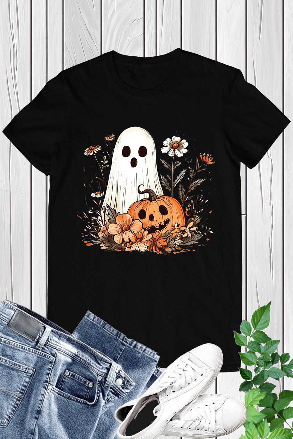 Introducing our Ghost Pumpkin Fall Floral Halloween Shirt. Made with premium materials, this shirt features a unique ghost pumpkin design perfect for the Halloween season. Its comfortable fit and eye-catching print make it a must-have for any fall outfit. Stand out from the crowd with this one-of-a-kind shirt.