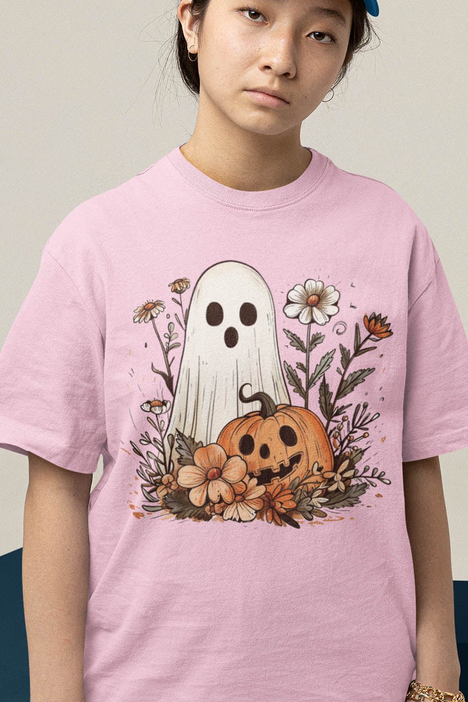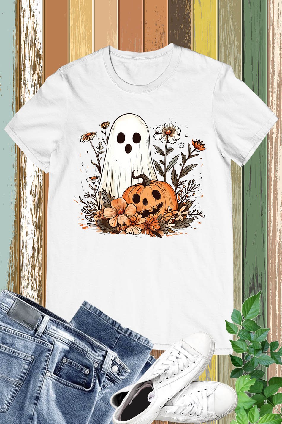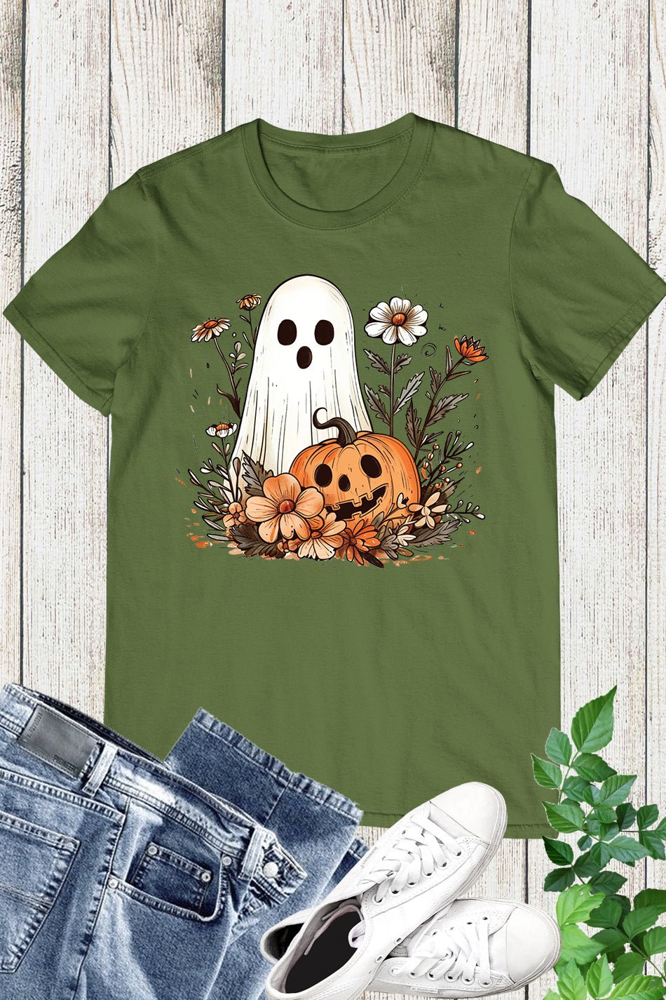 Introducing our Ghost Pumpkin Fall Floral Halloween Shirt. Made with premium materials, this shirt features a unique ghost pumpkin design perfect for the Halloween season. Its comfortable fit and eye-catching print make it a must-have for any fall outfit. Stand out from the crowd with this one-of-a-kind shirt.