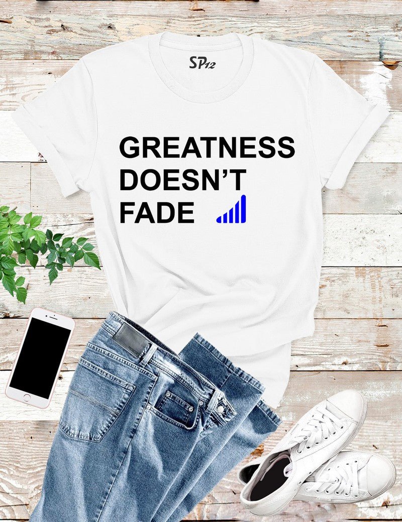 Greatness Does’t Fade T Shirt is printed with the message Greatness.Fan of motivational quotes or funny memes then you will like our slogan tshirt. These soft cotton tshirts are stylish and comfy. Funny t shirts that can give someone a laugh or sparkling smile and happy time. This slogan t shirt will get an attention and compliment.