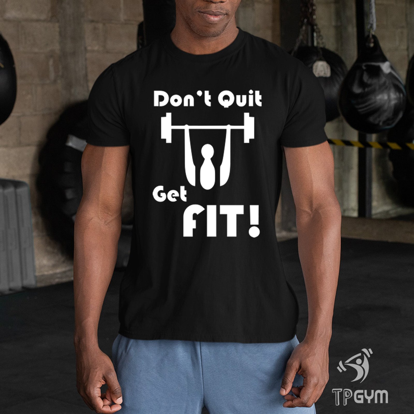 Gym Crossfit Fitness T Shirt Don’t quit Get fit Barbells Push limits