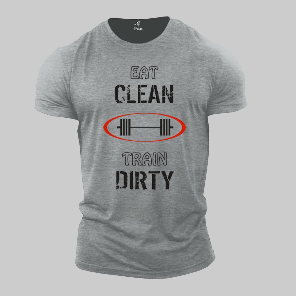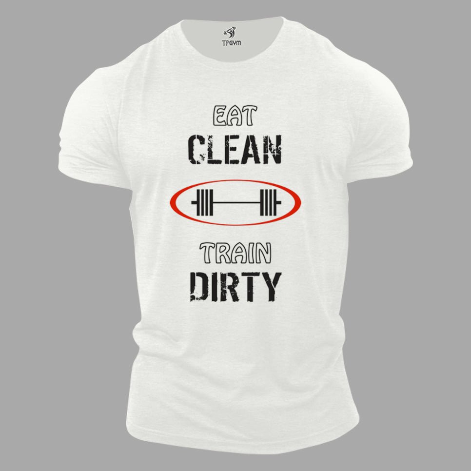 Gym Fitness Crossfit T shirt Eat Clean Train Dirty Barbells