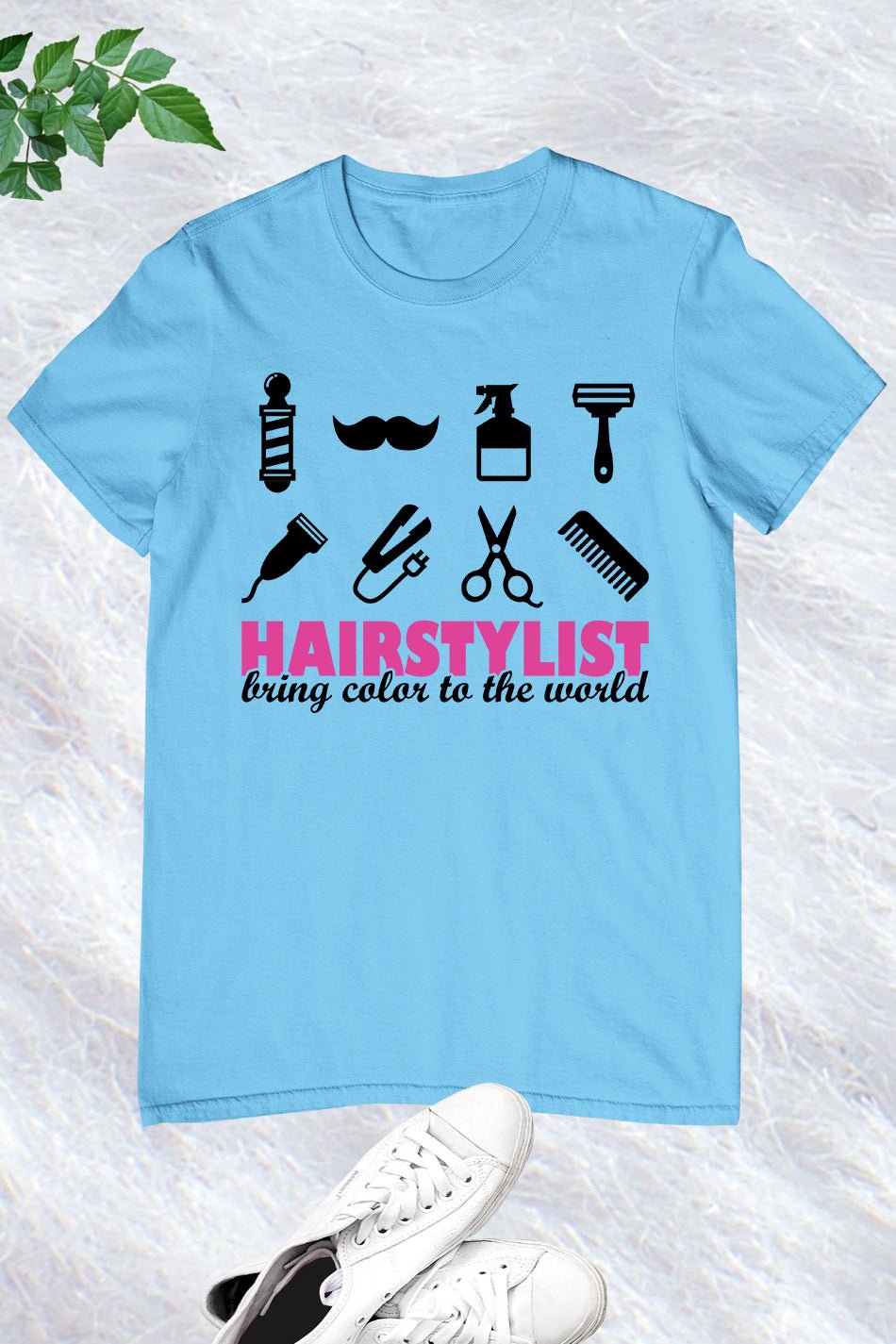 As a hairstylist, bring color to the world with this bold t-shirt. Made with high-quality materials, this t-shirt is perfect for highlighting your creativity and expertise. Make a statement and showcase your passion for hairstyling with this professionally designed t-shirt.