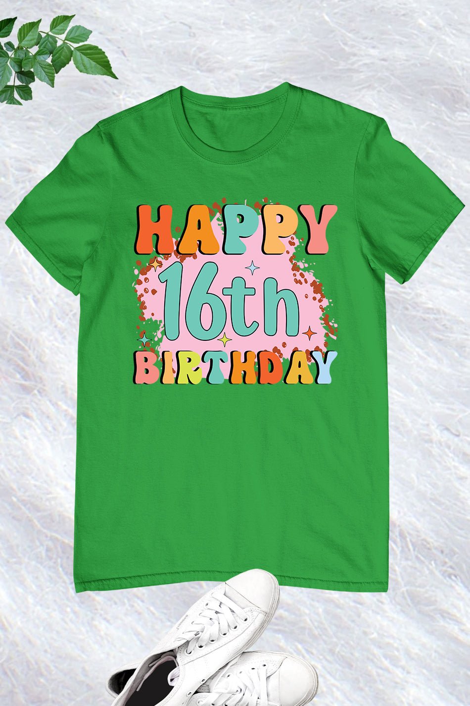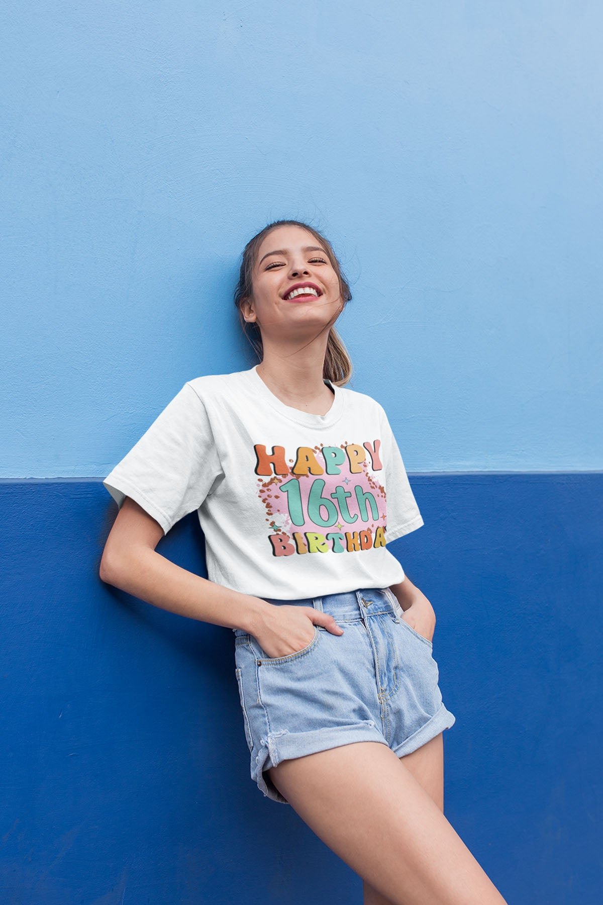 Celebrate your special day with our Happy 16th Birthday Shirt. Made with high-quality materials, this shirt is designed to provide maximum comfort and durability. Let everyone know it’s your milestone birthday with our eye-catching design. A perfect gift for a sweet 16 celebration!