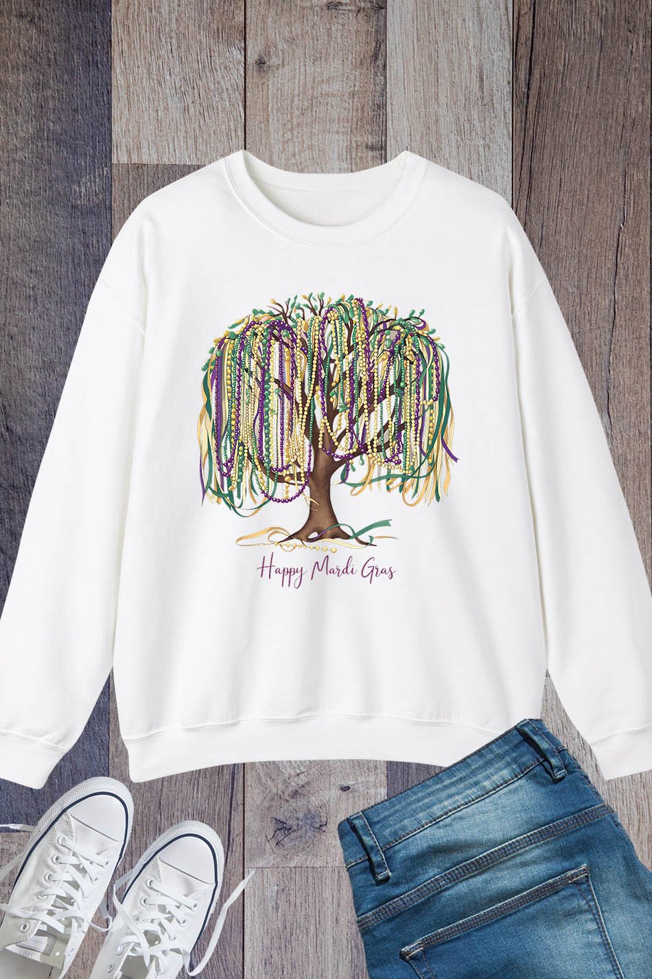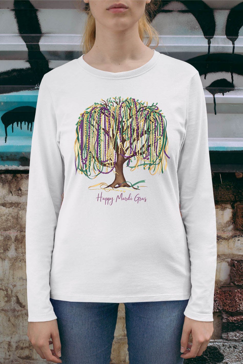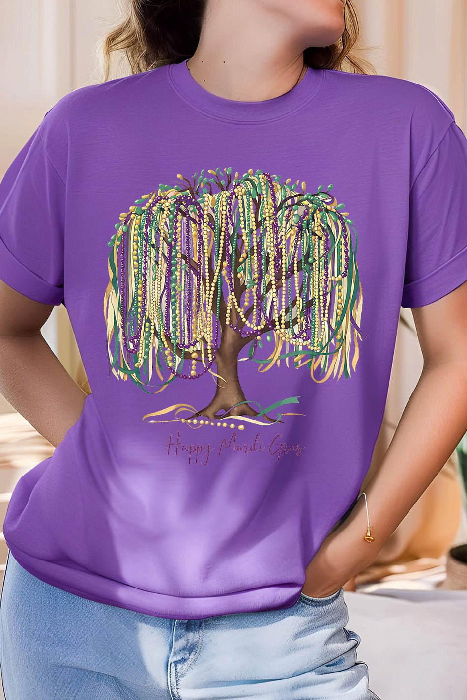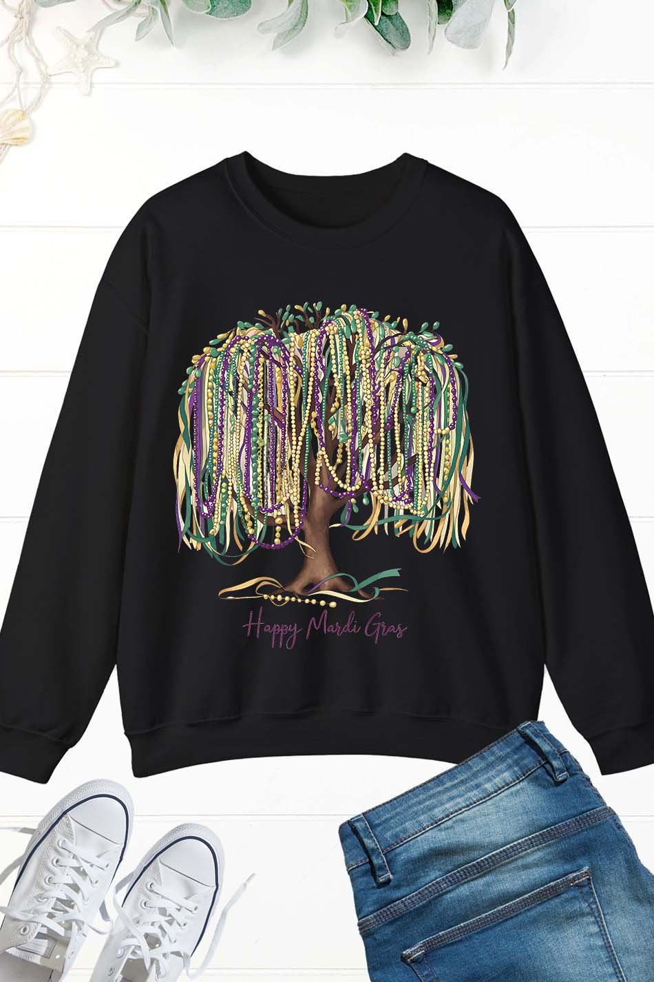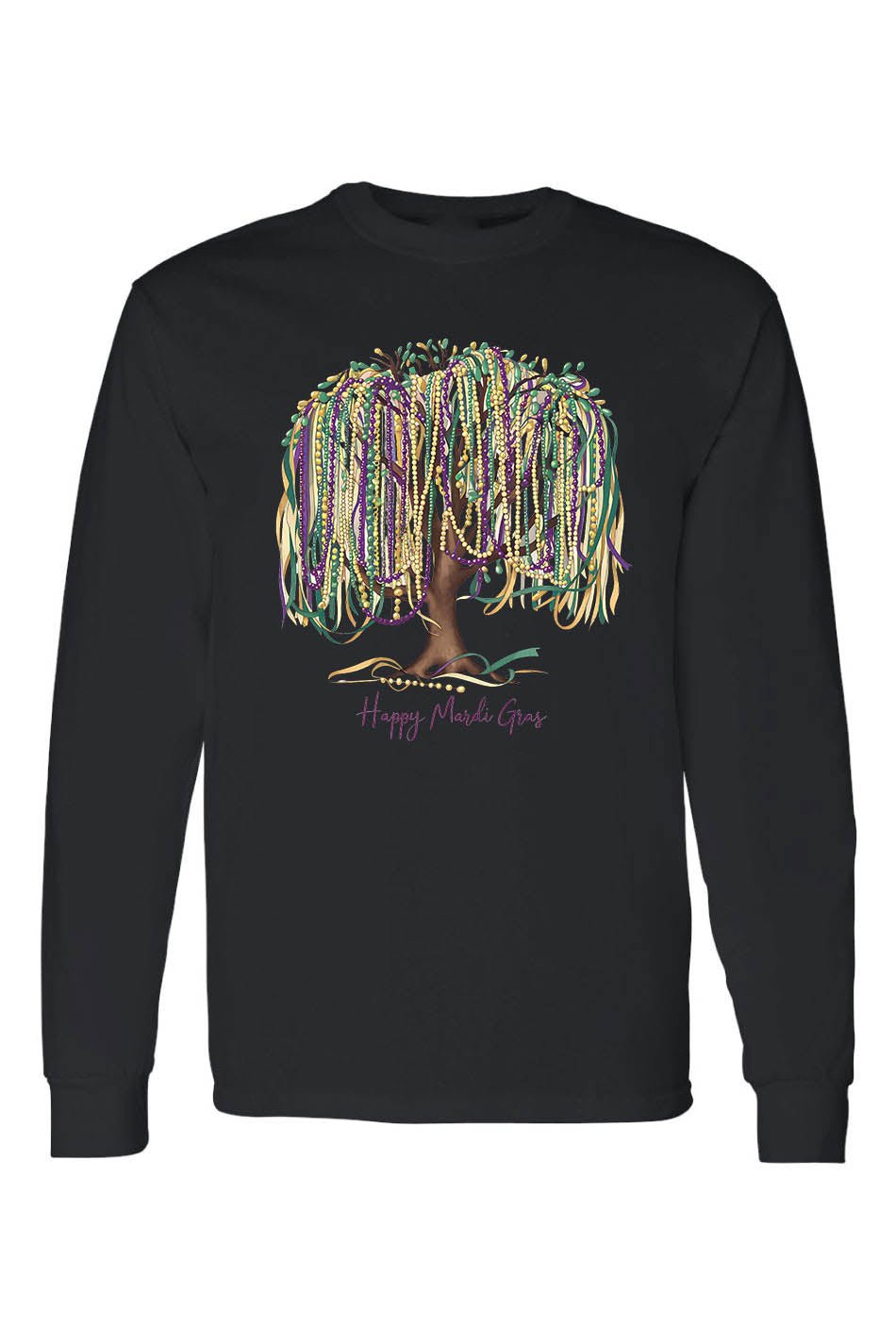 Celebrate Mardi Gras in style with the Happy Mardi Gras Tree Shirt! This festive shirt features a unique design with a happy bead queen, perfect for parade parties. Spread the joy of Mardi Gras and stand out from the crowd with this one-of-a-kind shirt.