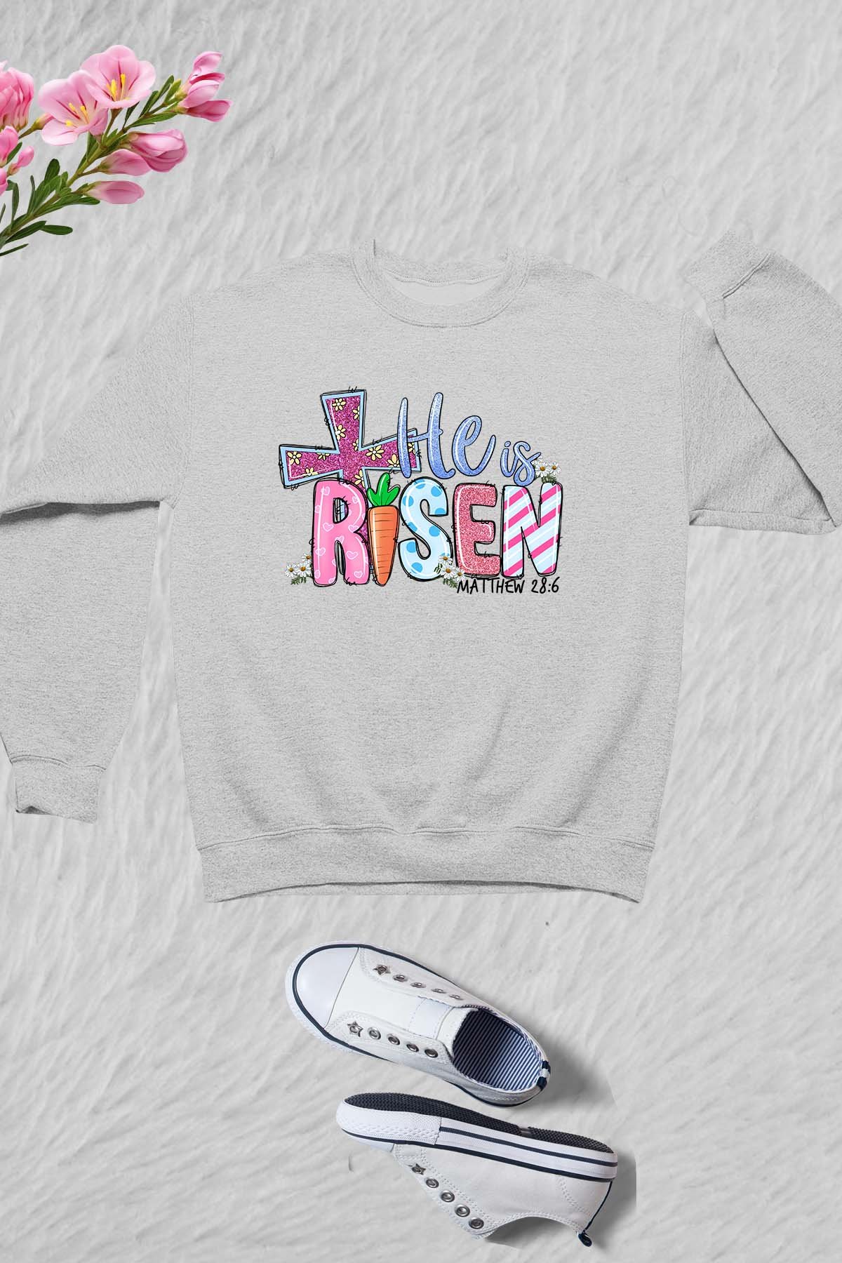 Be the first to review “He is Risen Easter Kids Sweatshirt”