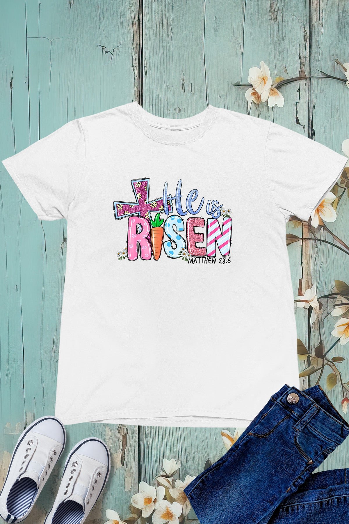 Celebrate Easter with this He is Risen t-shirt for kids! Spread the message of hope and renewal with this comfortable and stylish shirt. Available in various sizes, it’s perfect for any child to wear on Easter Sunday or any day of the year.