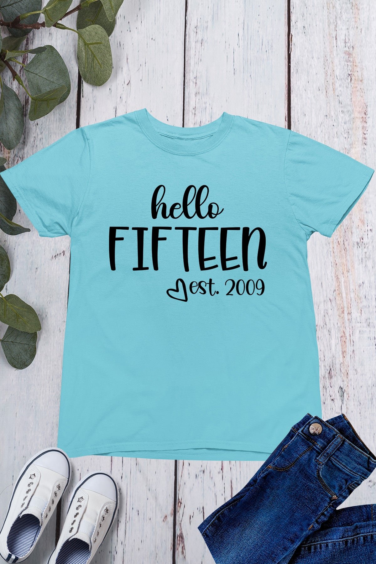Get ready to celebrate in style with our Hello Fifteen Birthday T Shirt. Made with high-quality materials, this shirt is the perfect addition to any birthday outfit. Show off your age with pride and let everyone know it’s your special day. Don’t settle for an ordinary birthday, make it a Hello Fifteen with our unique shirt.
