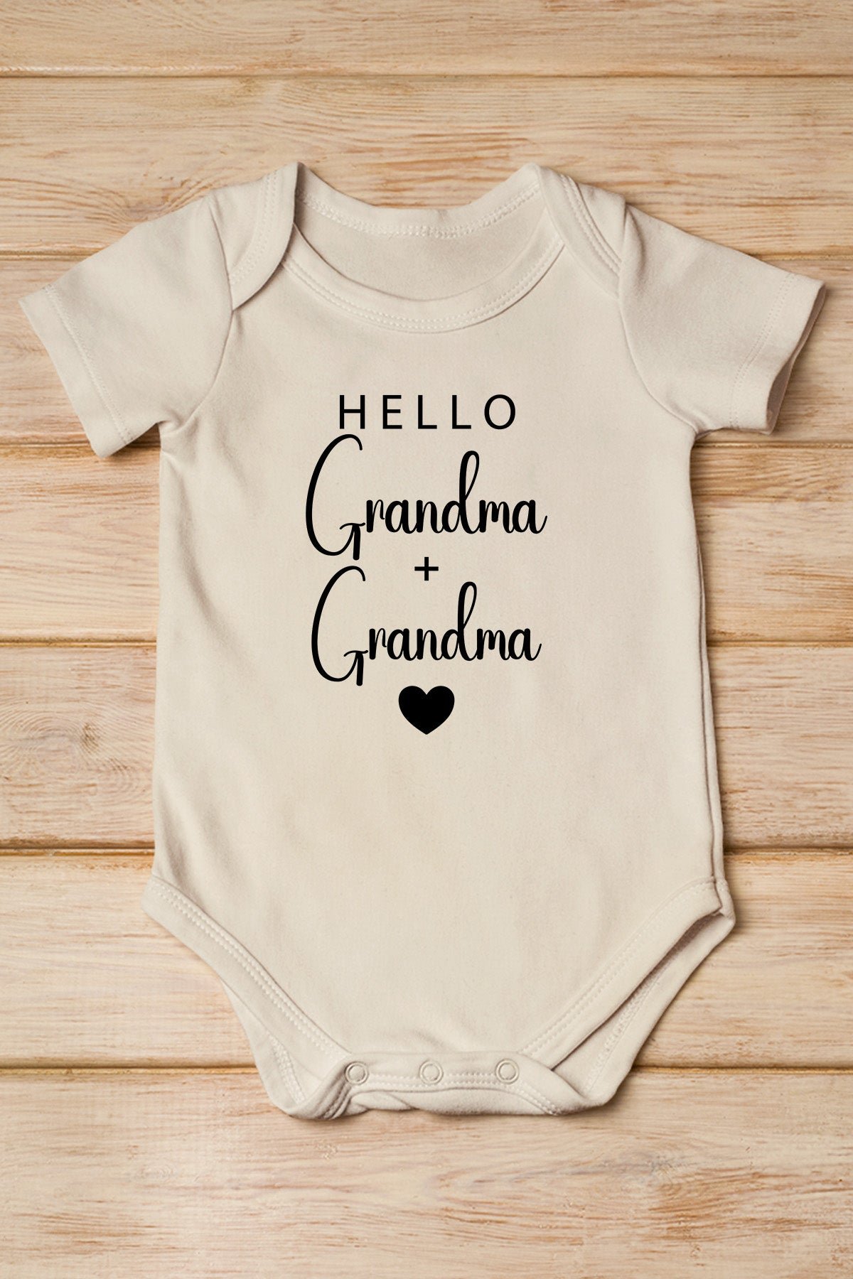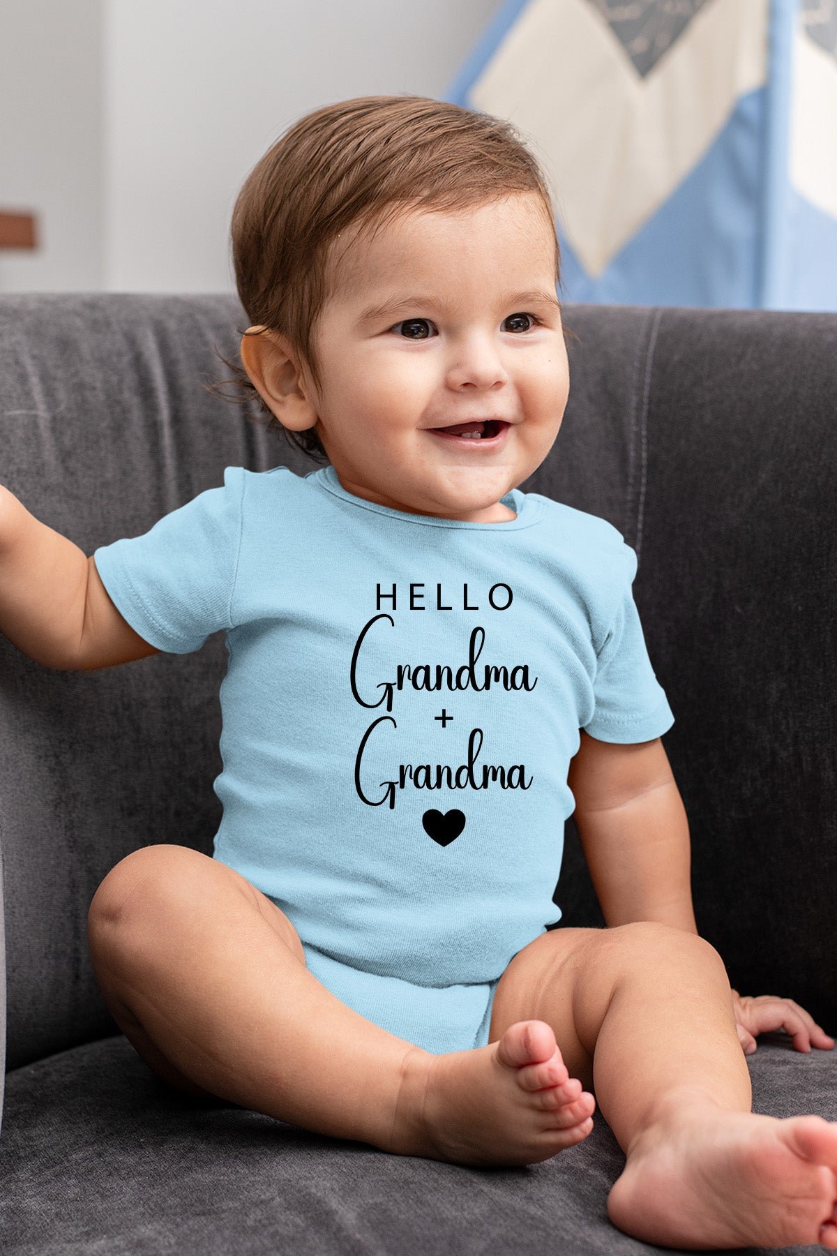 This Hello Grandma Baby Bodysuit is the perfect way to introduce your little one to their new family member. Made from soft and comfortable fabric, it features the words “Hello Grandma” on the front, making it a sweet and thoughtful gift for any new grandparent. Show your love and excitement with this adorable bodysuit.