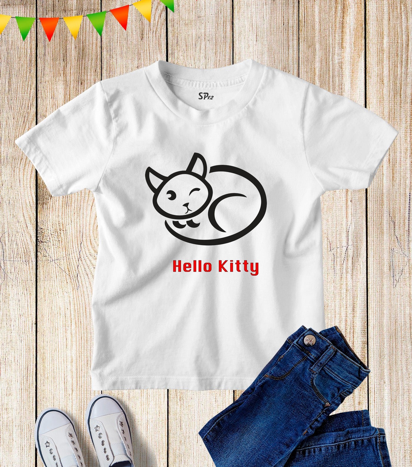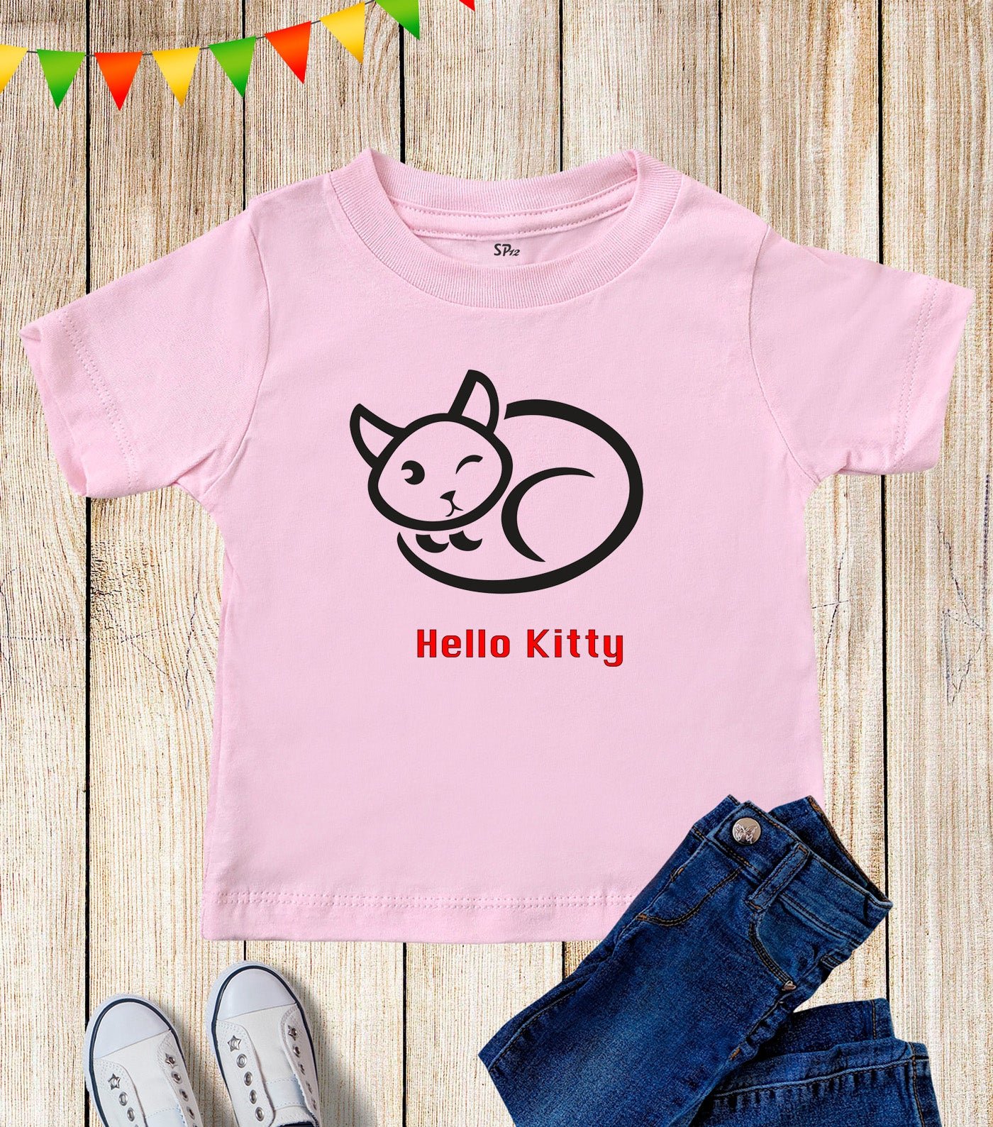 Kitten Kitty Little Cute Cat Greeting Hello Character Children Kids T shirt