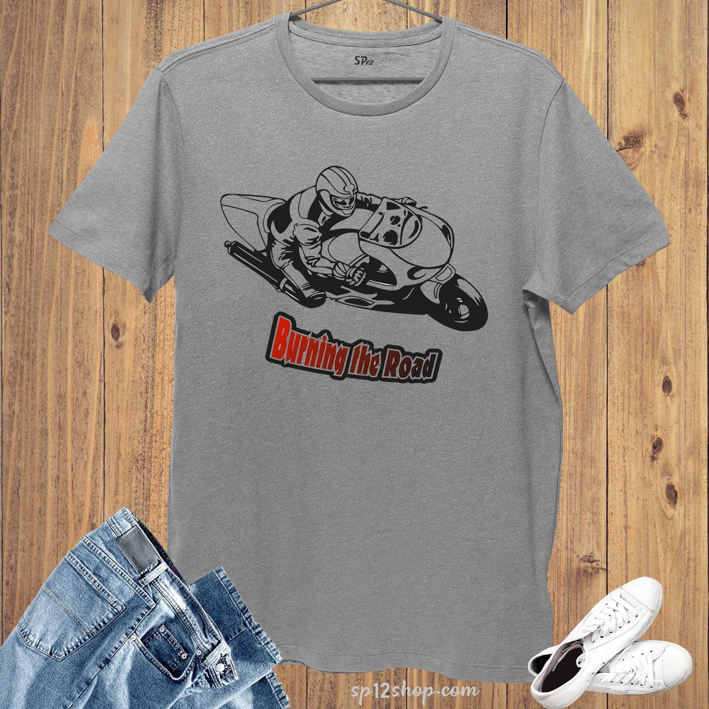 SKU: 730862354476-hobby-t-shirt-burning-the-road-motorcycle-cyclist Category: