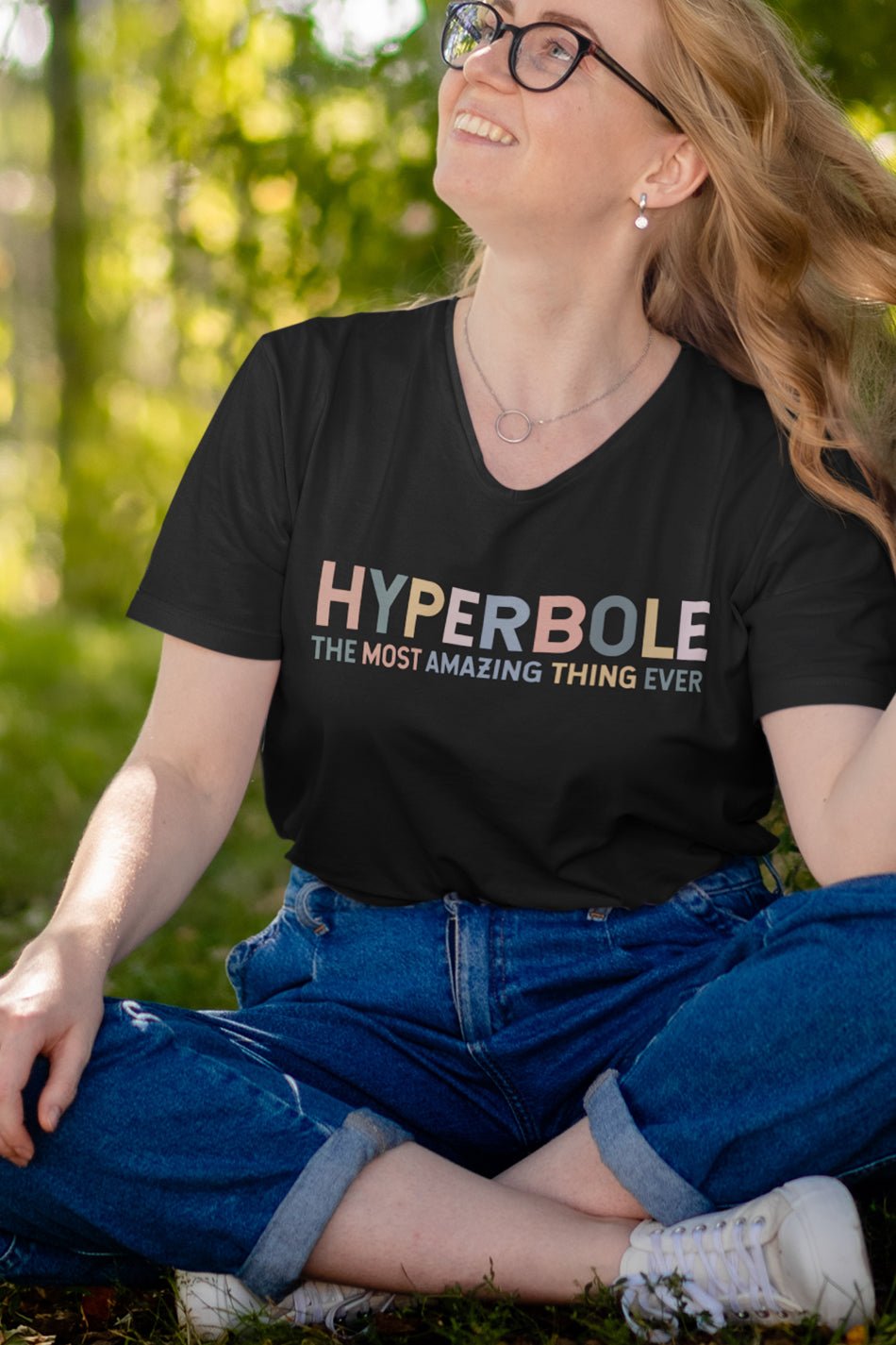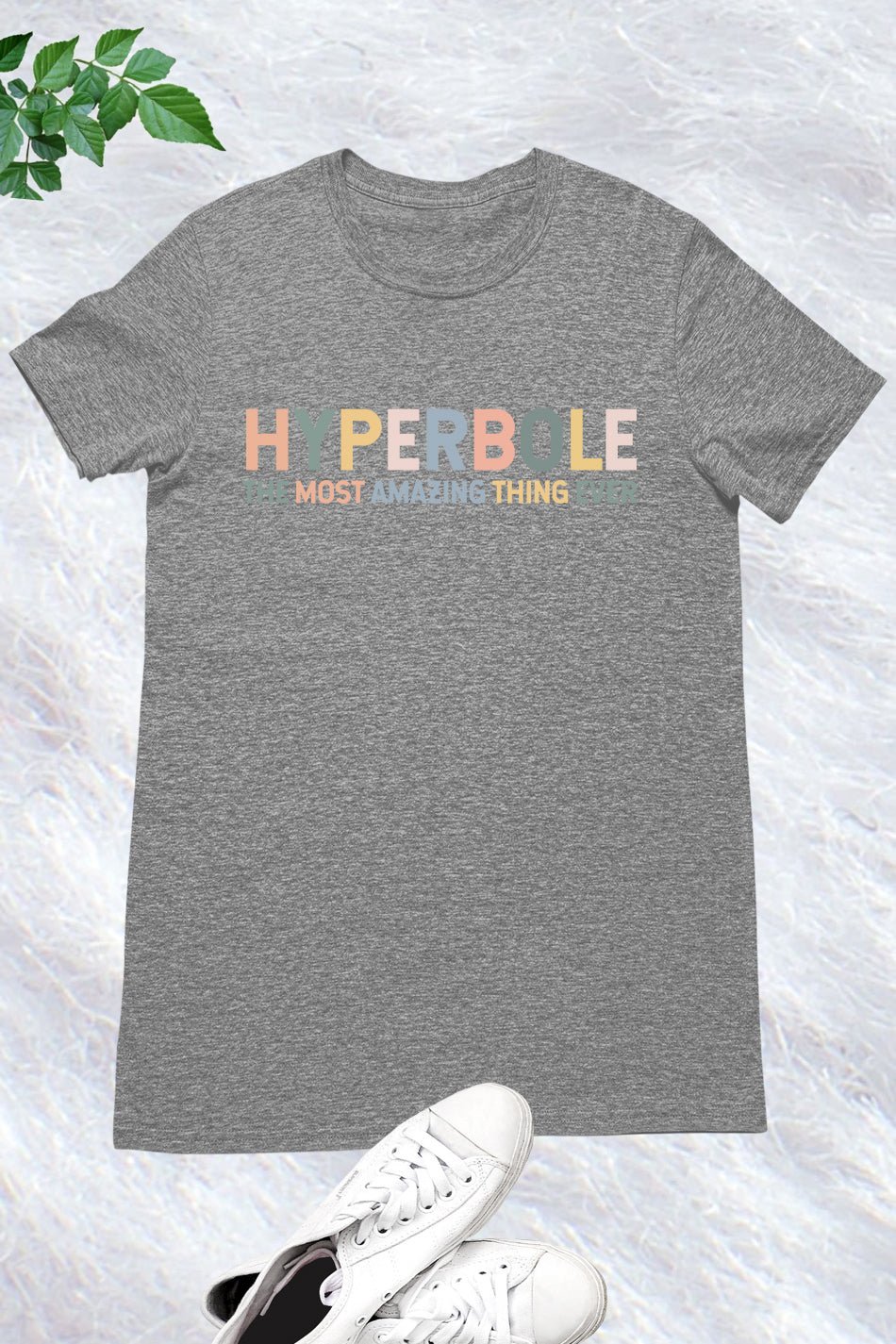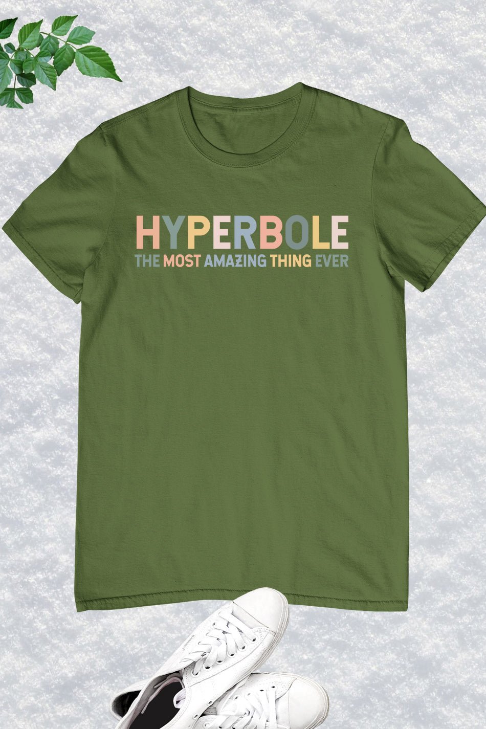 Experience the power of exaggeration with our Hyperbole The Greatest Thing Ever Shirt. Made with high-quality fabric, this shirt boasts a comfortable fit and bold design. Show off your love for hyperbole and make a statement wherever you go.
