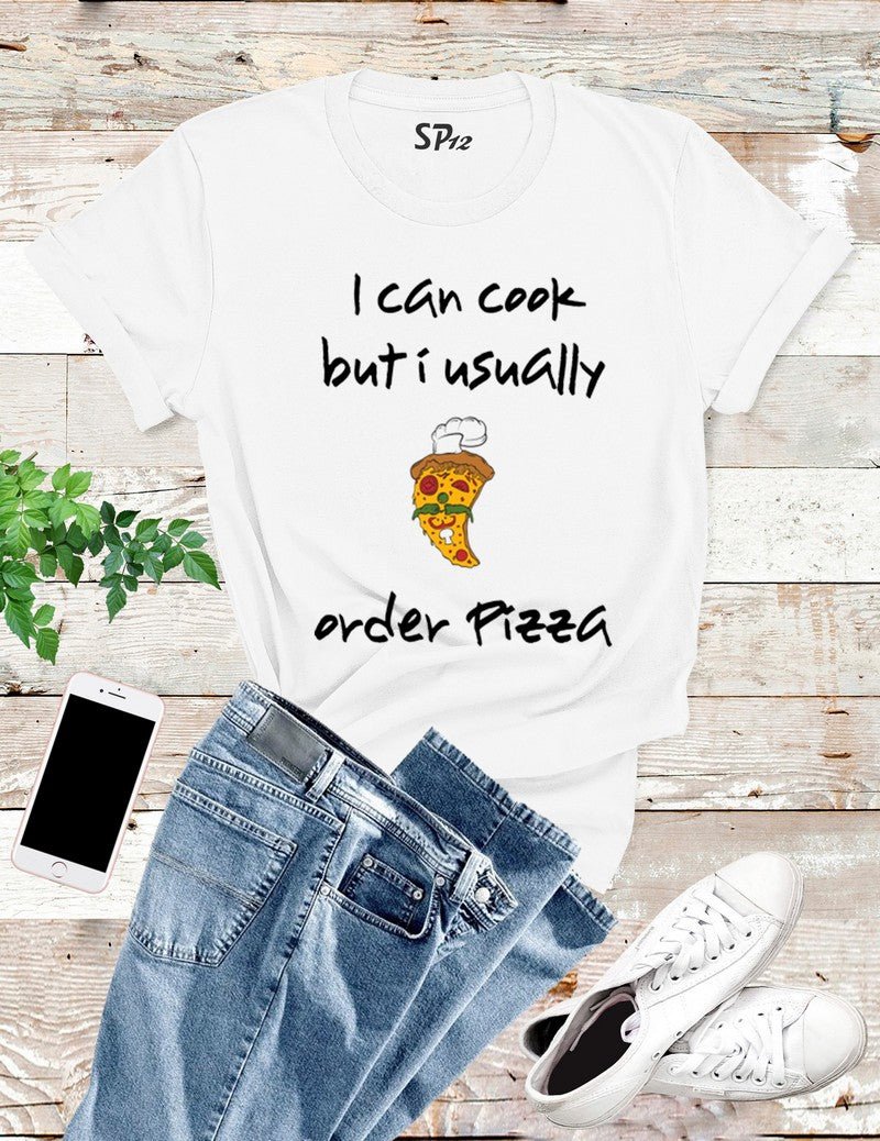 I Can Cook But I Usually Order Pizza T Shirt is printed with the message Pizza.Fan of motivational quotes or funny memes then you will like our slogan tshirt. These soft cotton tshirts are stylish and comfy. Funny t shirts that can give someone a laugh or sparkling smile and happy time. This slogan t shirt will get an attention and compliment.