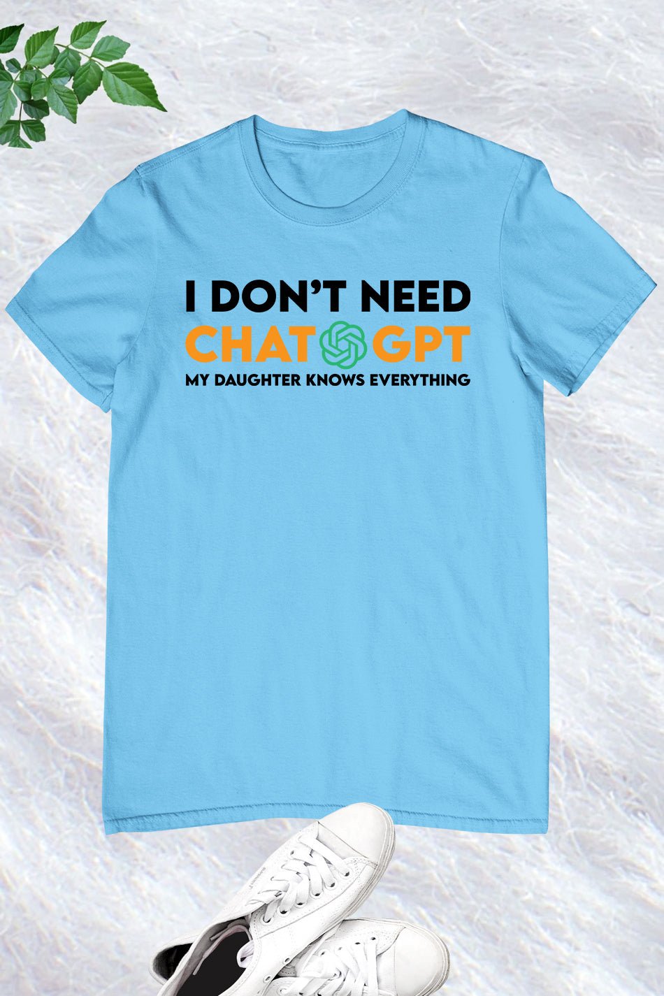 As a parent, you know how frustrating it can be to constantly be reminded of your child’s innate knowledge. With our “I Don’t Need ChatGpt My Daughter Know Everything Shirt”, you can proudly show off your expert daughter’s abilities while also making a statement about the unnecessary use of artificial intelligence. Made with high-quality materials and a design that is sure to catch attention, this shirt is the perfect addition to any proud parent’s wardrobe.