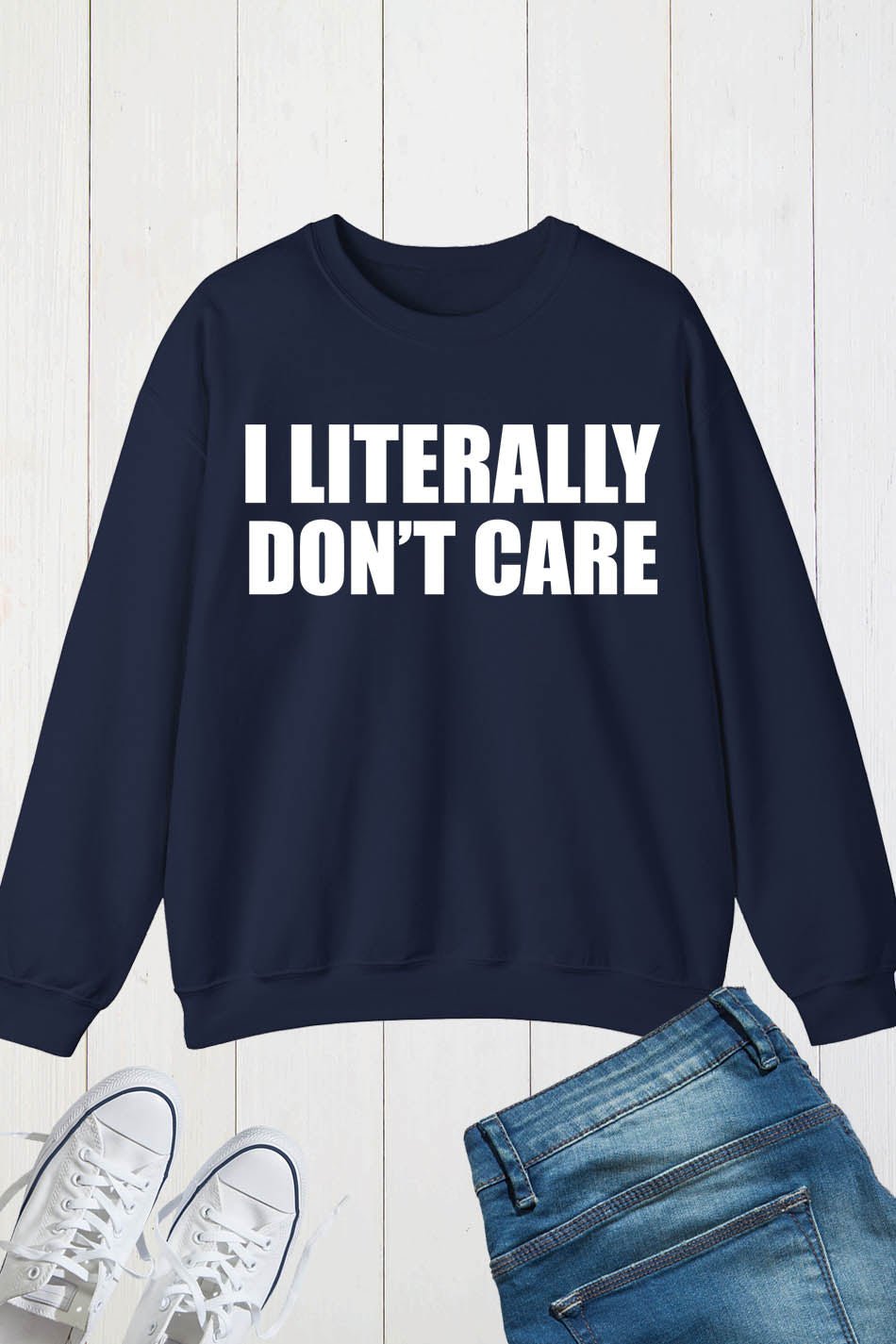 Stay warm and showcase your sense of humor with our I Literally Don’t Care Funny Sweatshirt. Made with quality materials, this sweatshirt is perfect for casual wear or lounging at home. With its humorous statement, it’s sure to be a conversation starter. A must-have for any laid-back and witty individual.