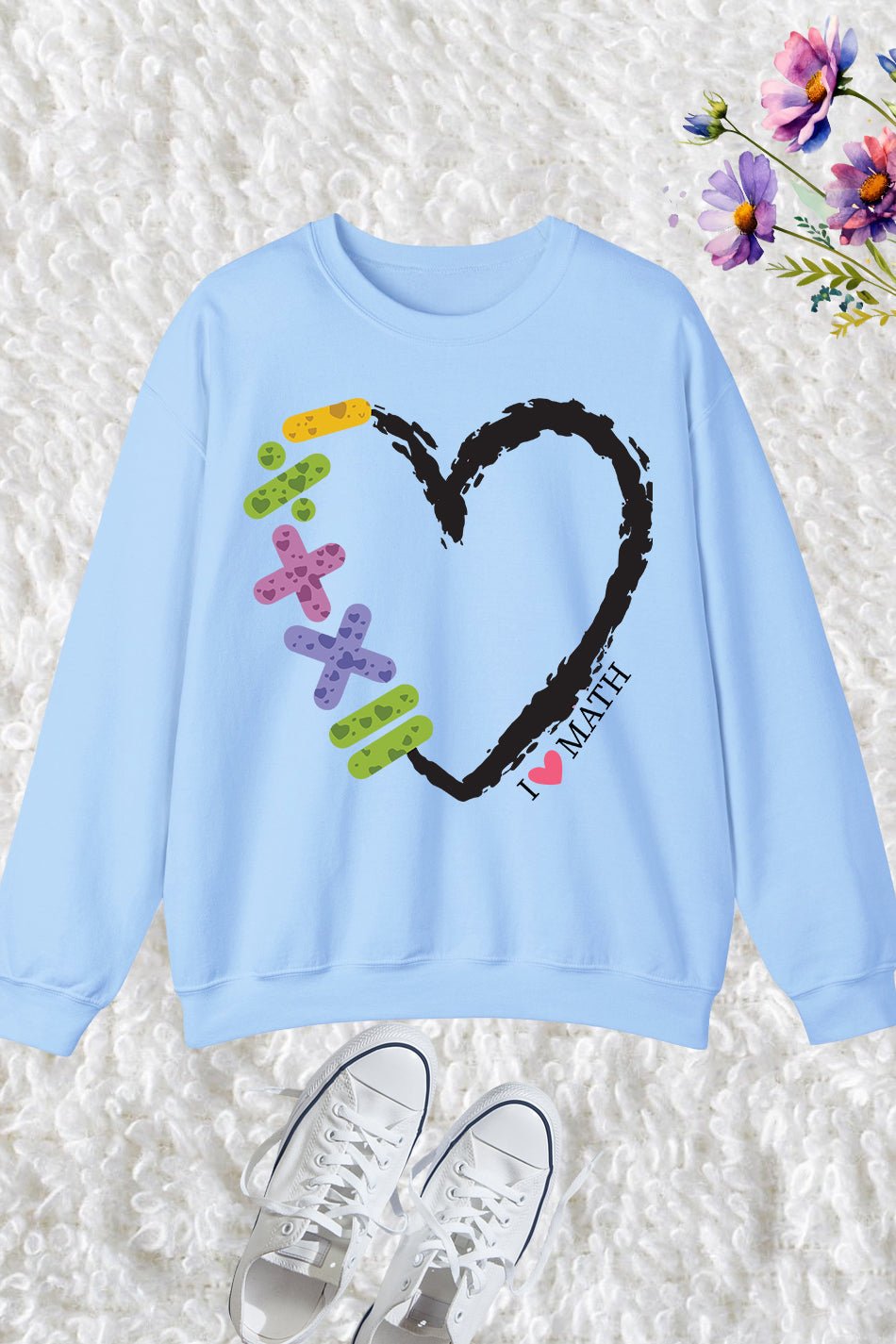 Stay cozy and show your appreciation for math teachers with our I Love Math Teacher Sweatshirt. Made with soft, high-quality materials, this sweatshirt is perfect for those who have a passion for numbers and learning. Let your love for math shine with this sweatshirt!