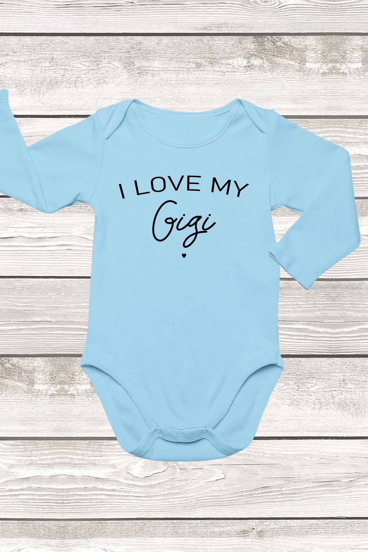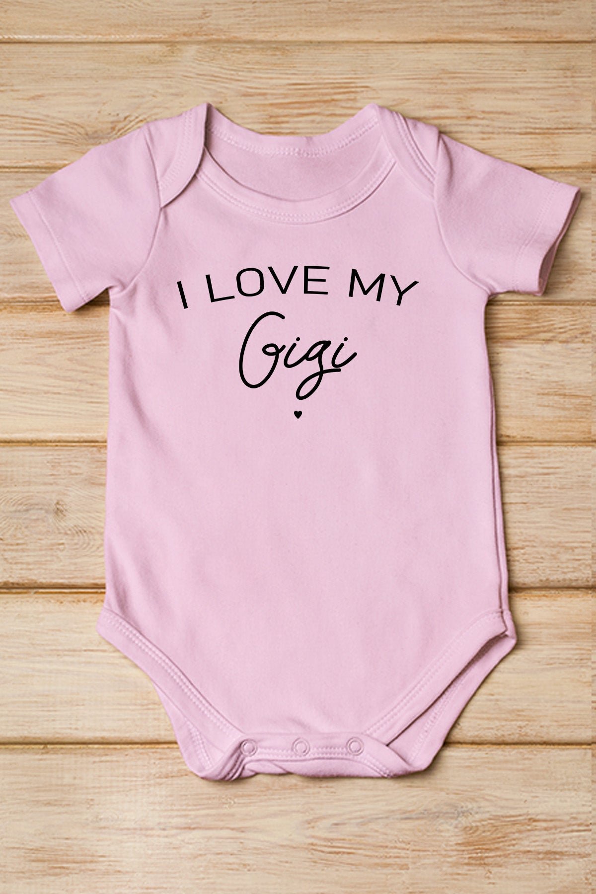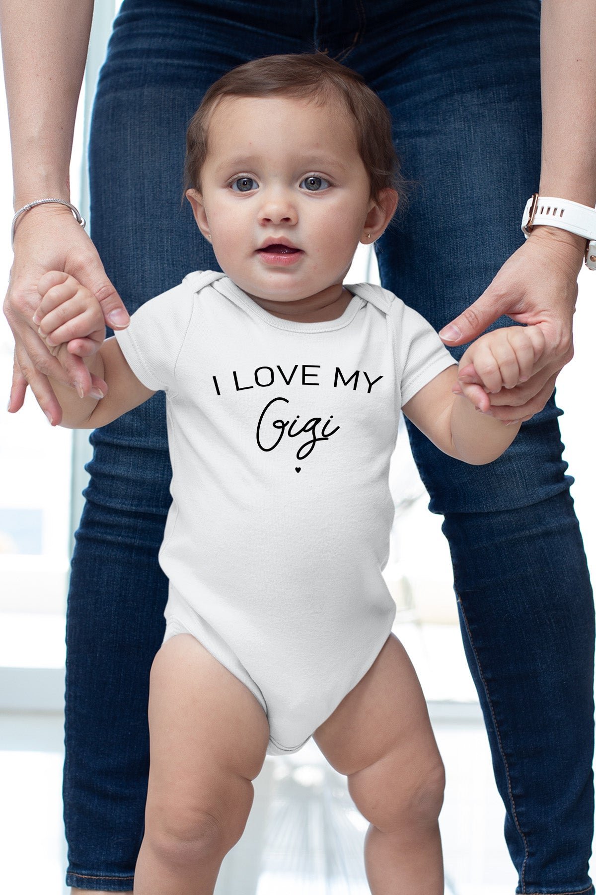 Show your love for your Gigi with this adorable baby bodysuit. Made with high-quality materials and a comfortable fit, it’s perfect for any little one. Share your special bond with the world and make your little one look even cuter. A must-have for any grandchild!