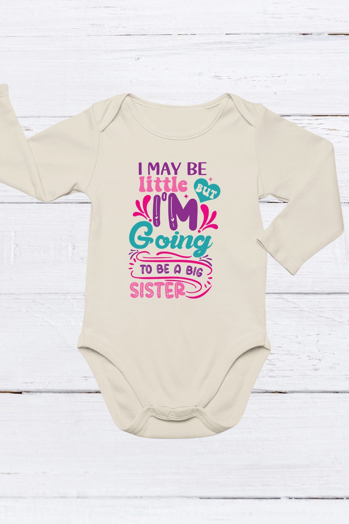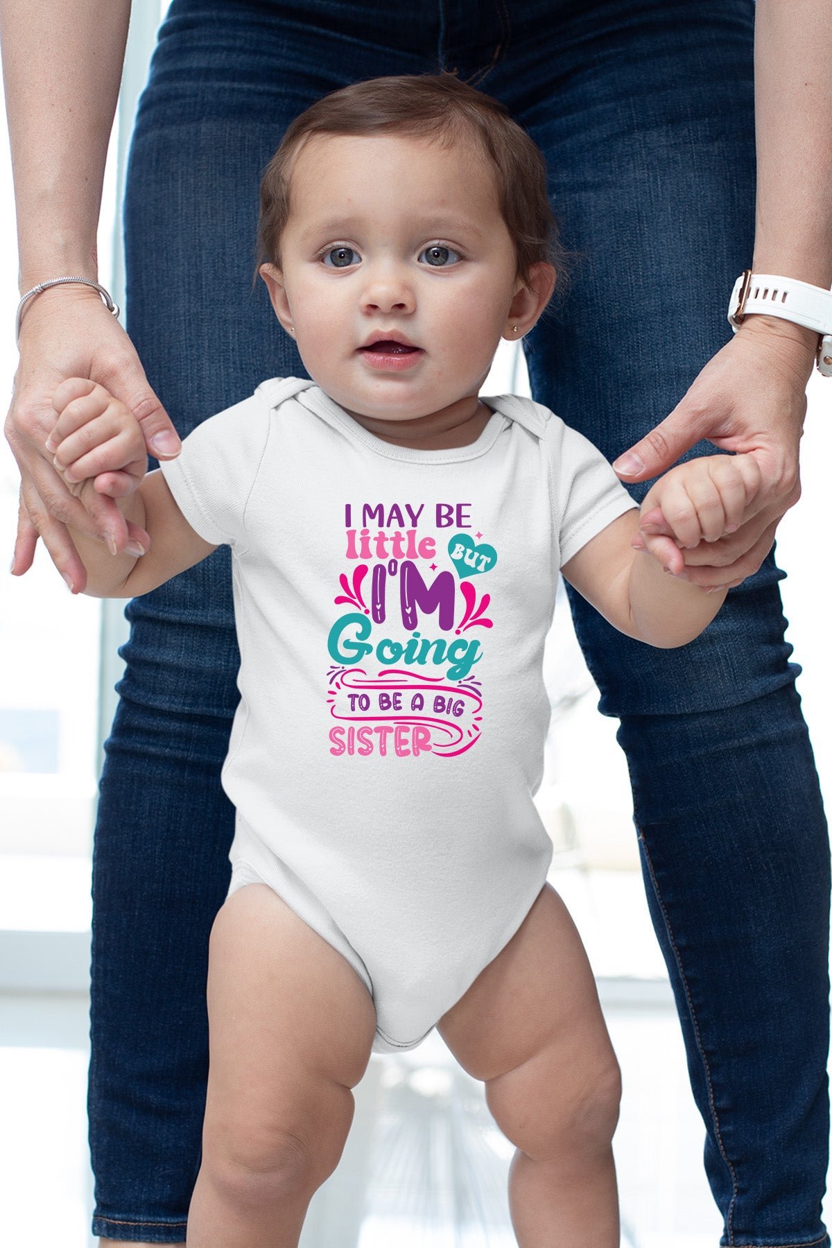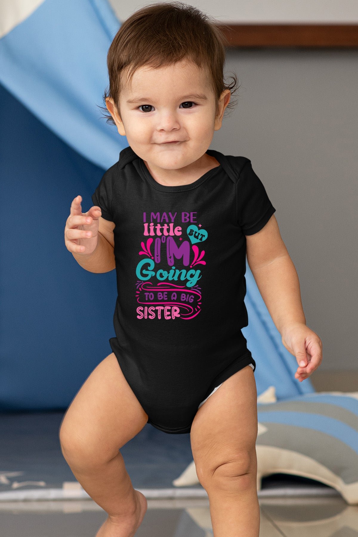 This adorable baby bodysuit is perfect for a little one who is going to be a big sister! The cute design features the phrase “I may be little, but I’m going to be a big sister” and is made with soft, comfortable material. Get ready for all the fun and excitement of becoming a big sister with this special bodysuit.