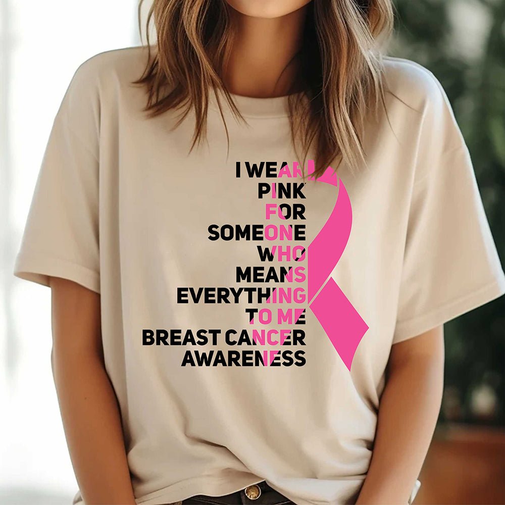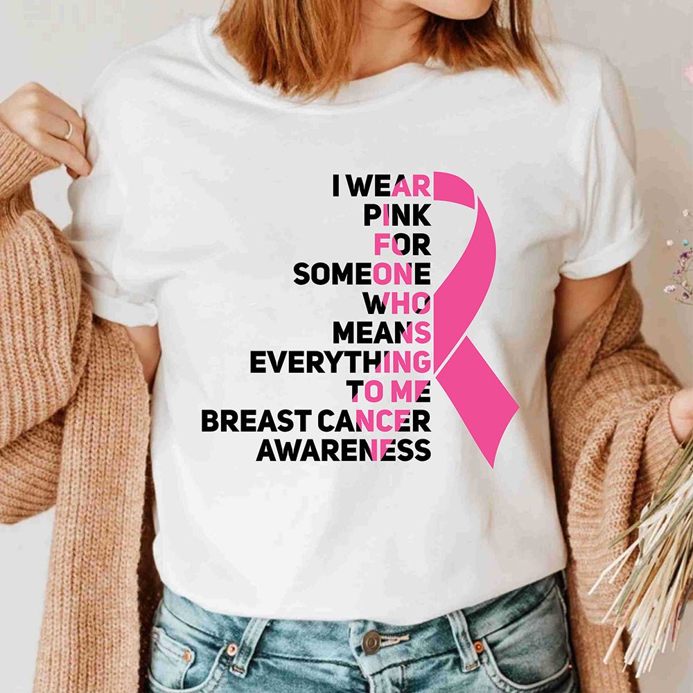 I Wear Pink For Someone Who Means The World To Me Pink Ribbon Breast Cancer Awareness T Shirt