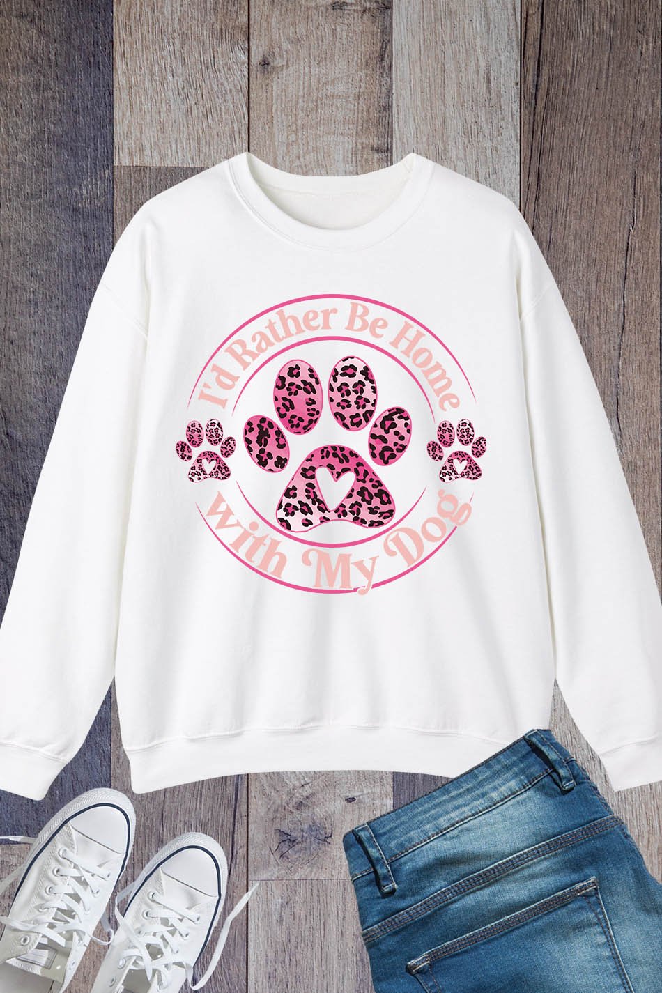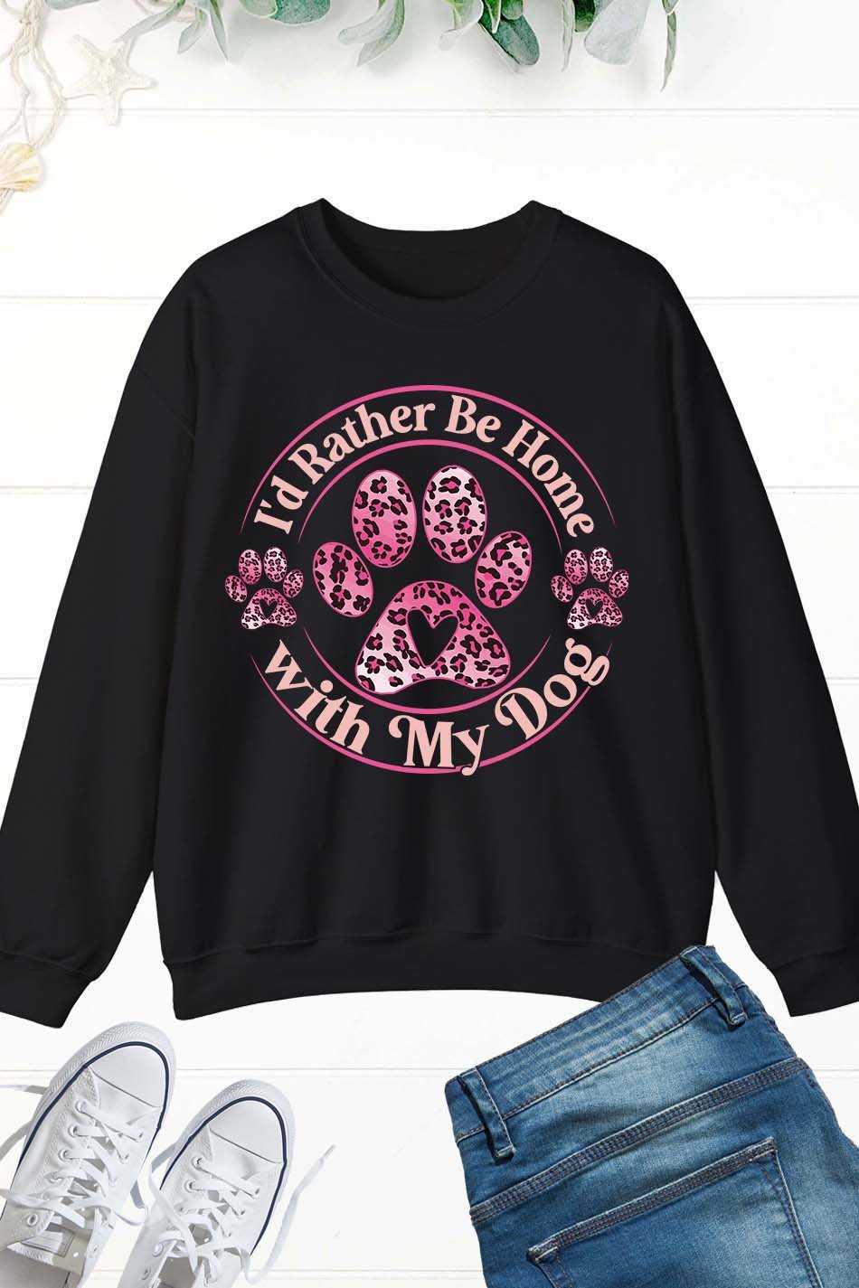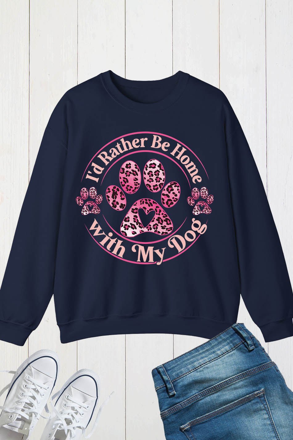 Stay cozy and stylish with our “I’d Rather Be Home with My Dog” sweatshirt. Made with high-quality materials, this sweatshirt displays your love for your furry friend while keeping you warm and comfortable. Perfect for dog lovers, this sweatshirt is a must-have for chilly days.
