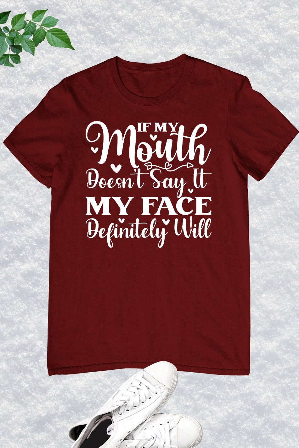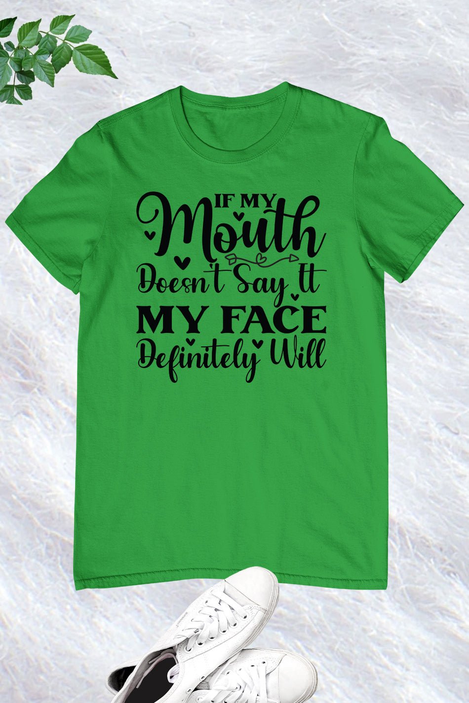 Express yourself and make a statement with our If My Mouth Doesn’t Say It My Face Definitely Will Shirt. This bold shirt allows you to speak without saying a word, showing off your true personality and attitude. Don’t hold back, let your shirt do the talking for you!