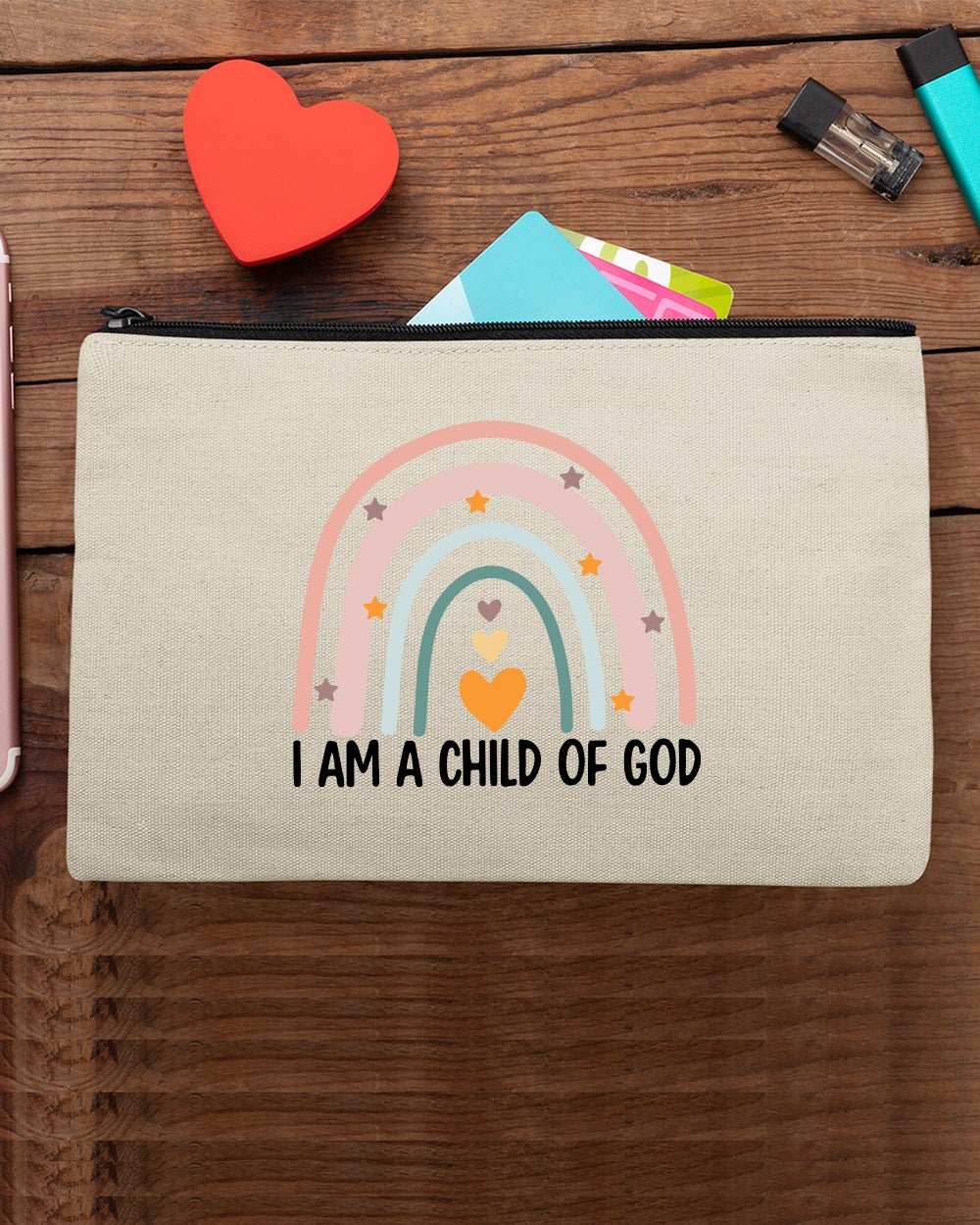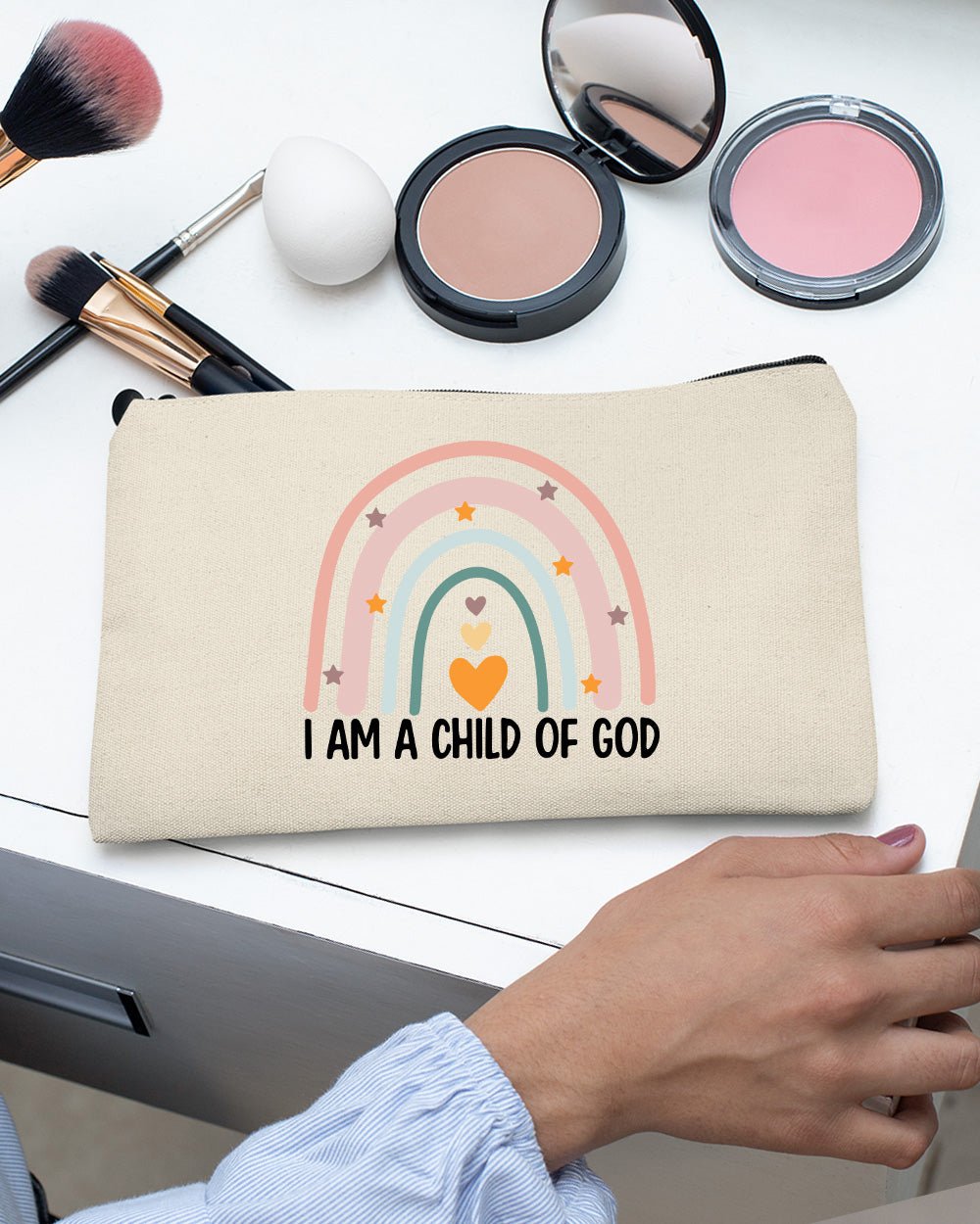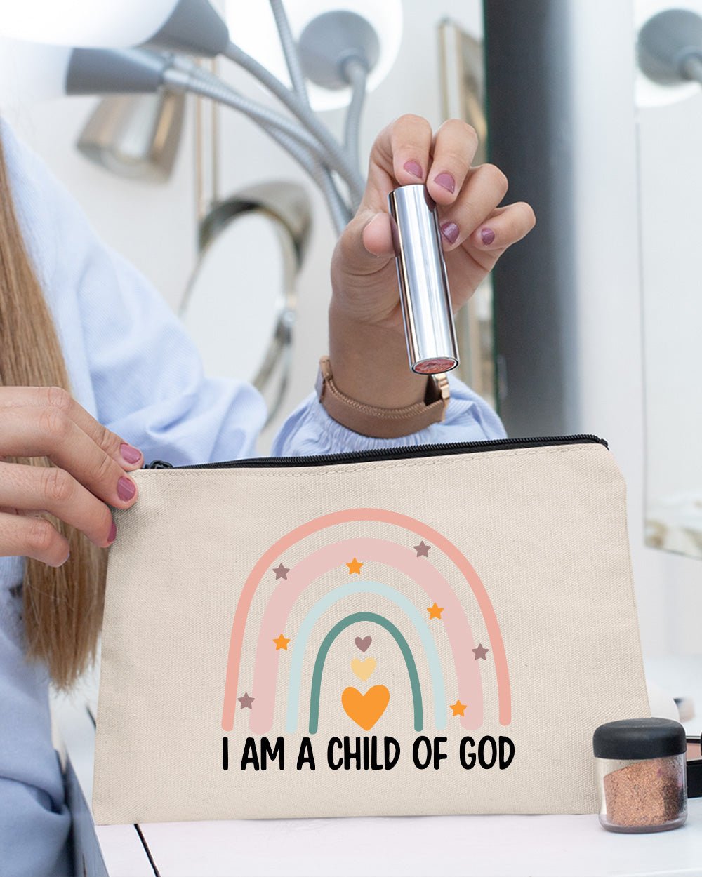 This makeup bag proudly displays its message: “I’m a Child of God.” Made of durable materials, it’s perfect for storing all your essentials while on the go. Show your faith and personal style with this Christian makeup bag.