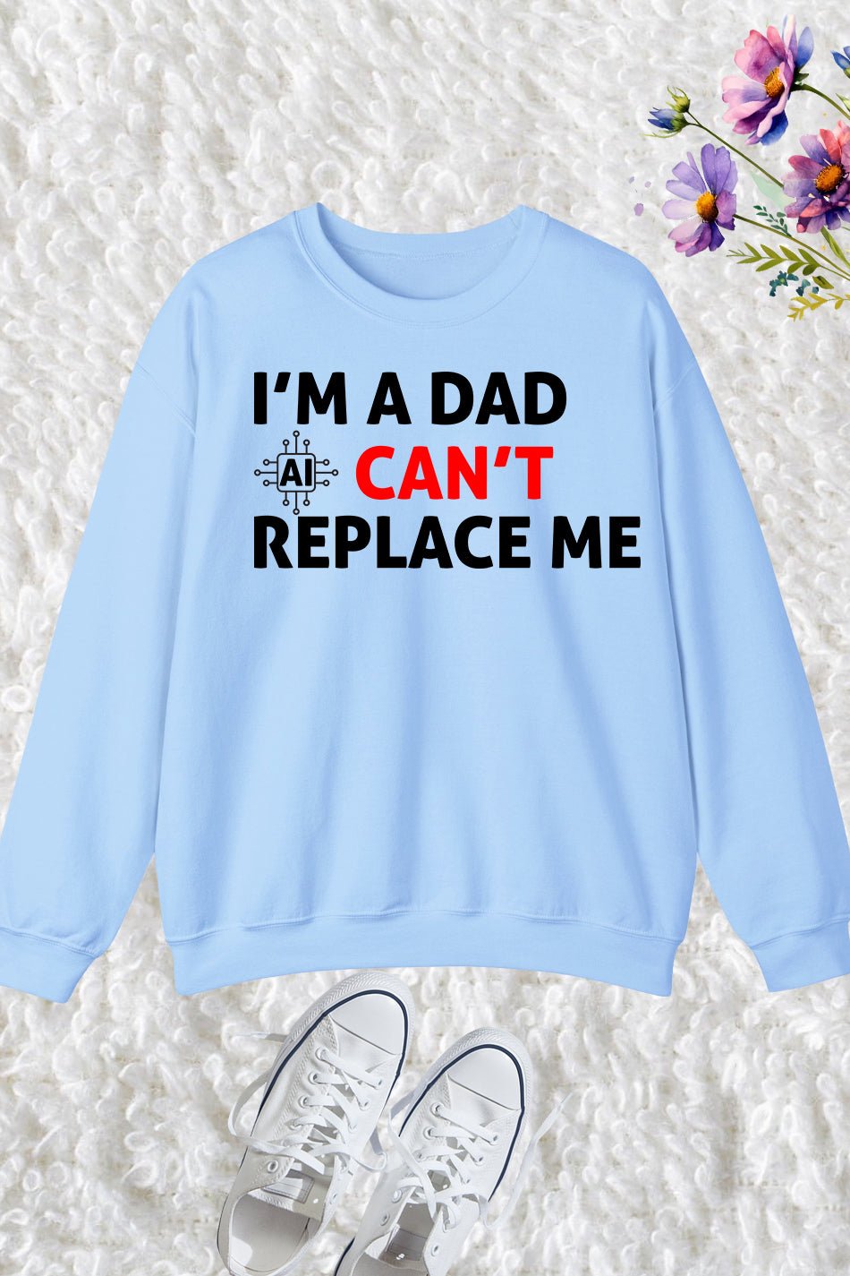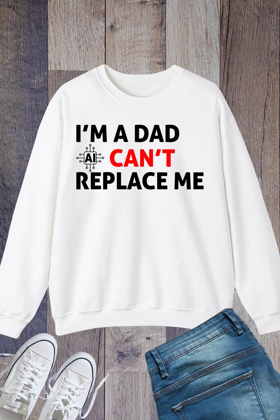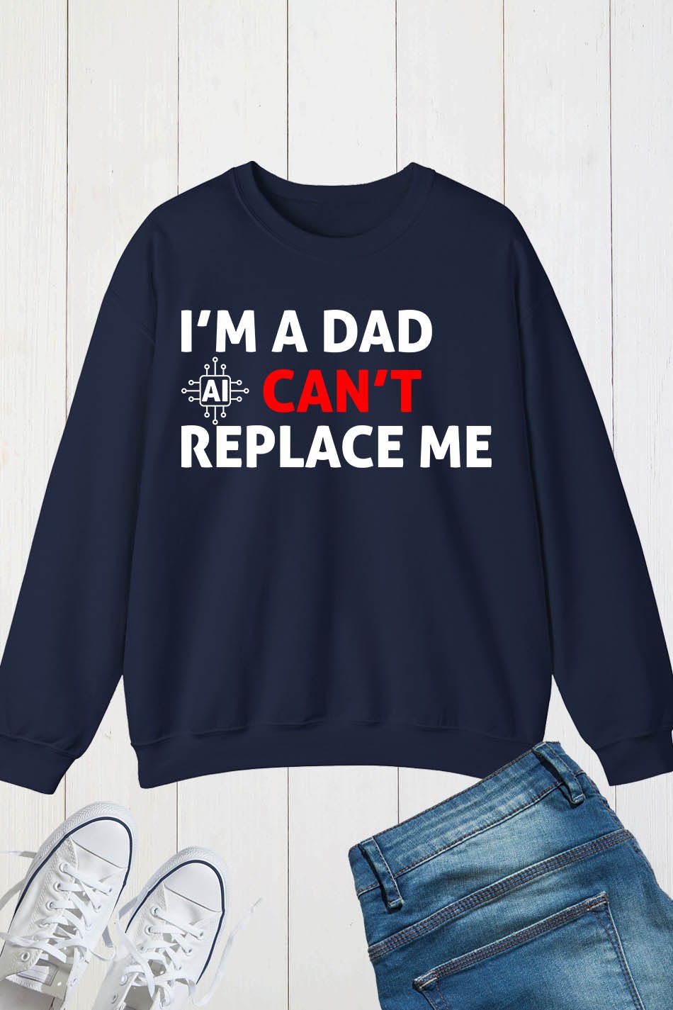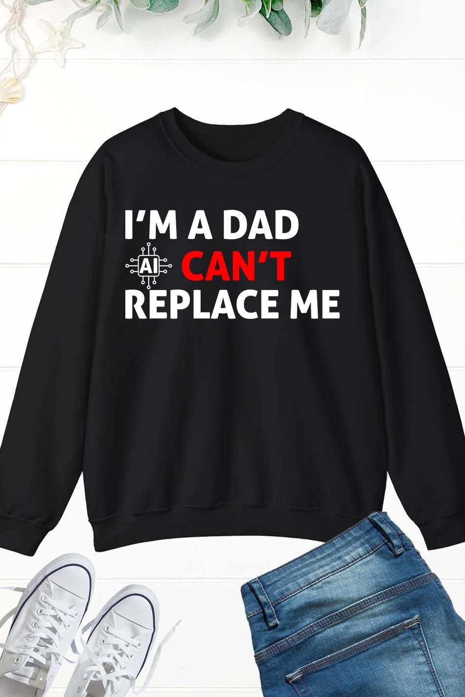 Crafted from high-quality materials, this Im A Dad Ai Can’t Replace Me Sweatshirt Dad Jumper is the perfect gift for any proud dad. Made with comfort and durability in mind, this jumper features the clever phrase “I’m a dad, AI can’t replace me” to show that a father’s love and care can never be replaced by technology. Stay cozy and stylish while celebrating the joys of fatherhood with this unique sweatshirt.