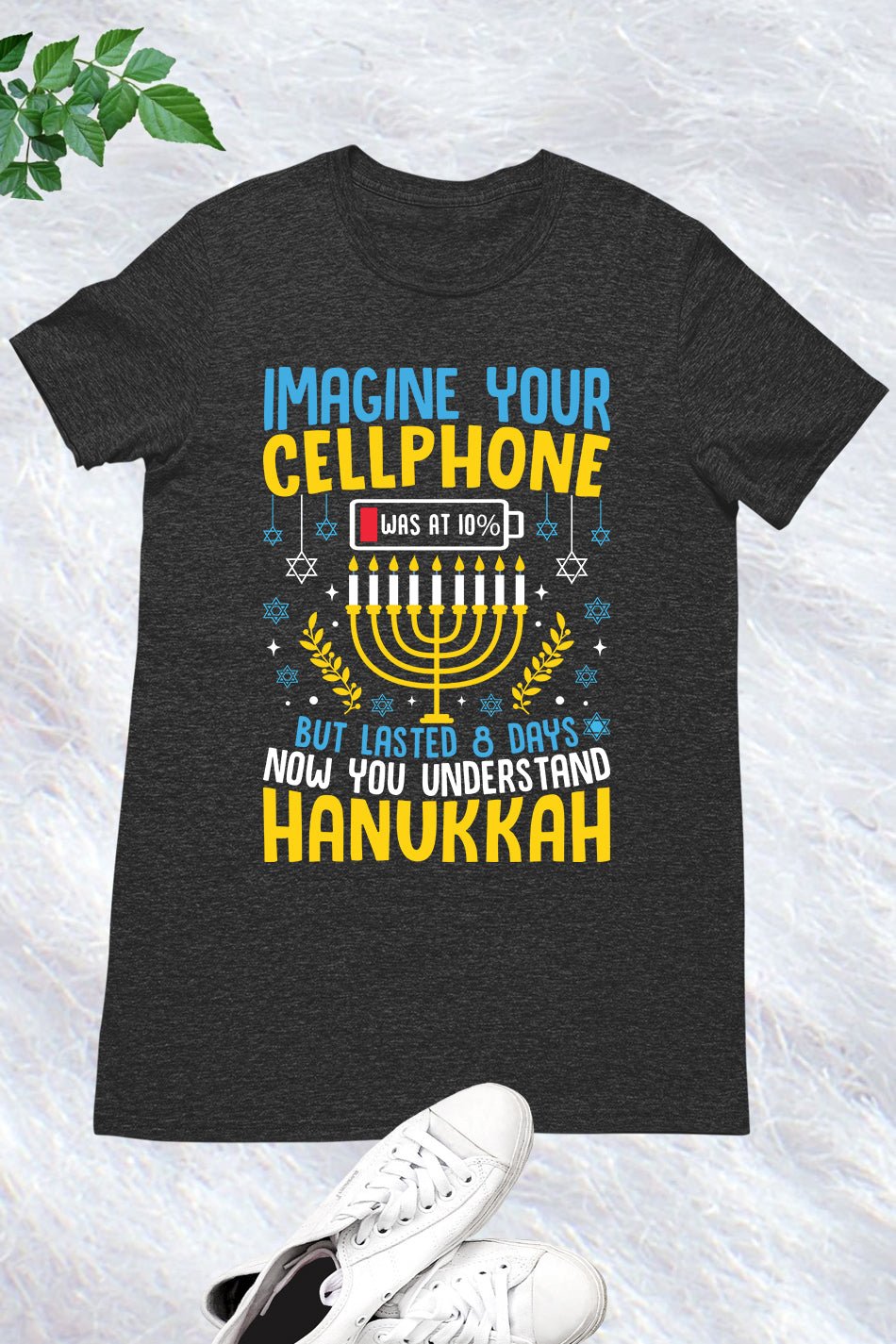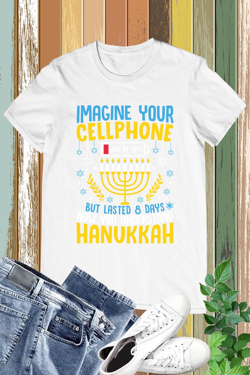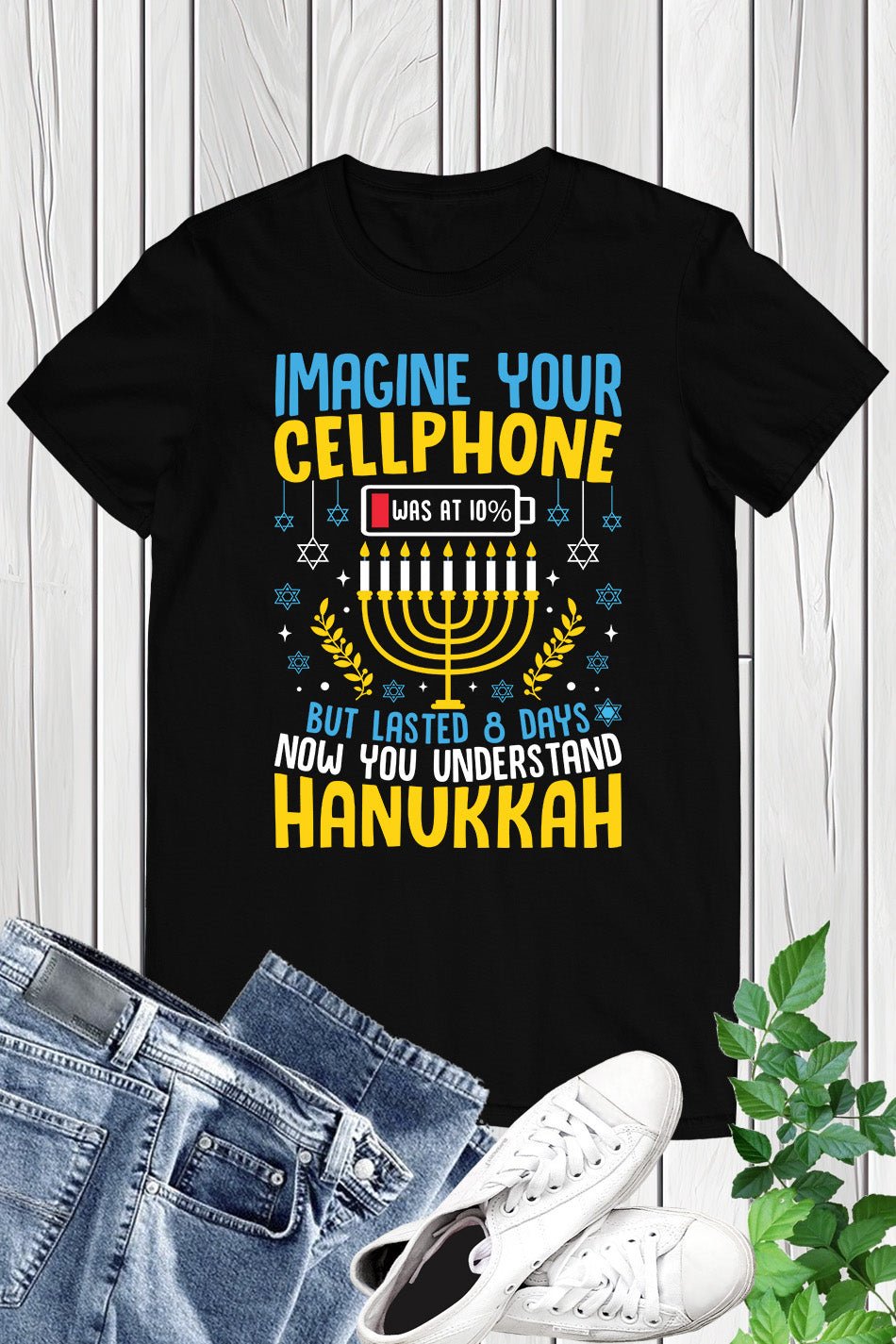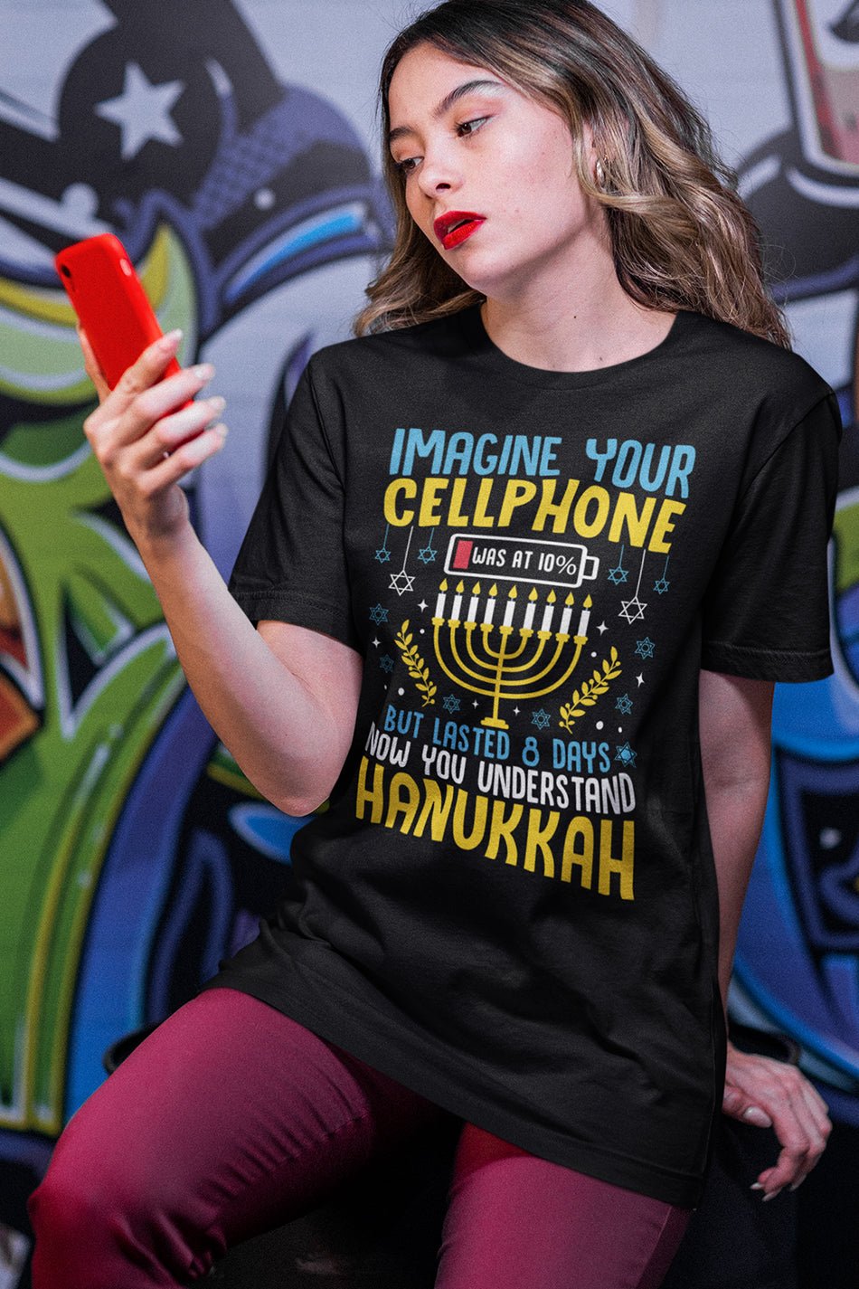 Experience the holiday season with a touch of humor wearing our Imagine Your Cellphone Funny Hanukkah Shirt. This soft and comfortable shirt is the perfect way to add some festive fun to your wardrobe while showing off your love for technology and the holiday of Hanukkah. Stay connected and stylish with this unique shirt.