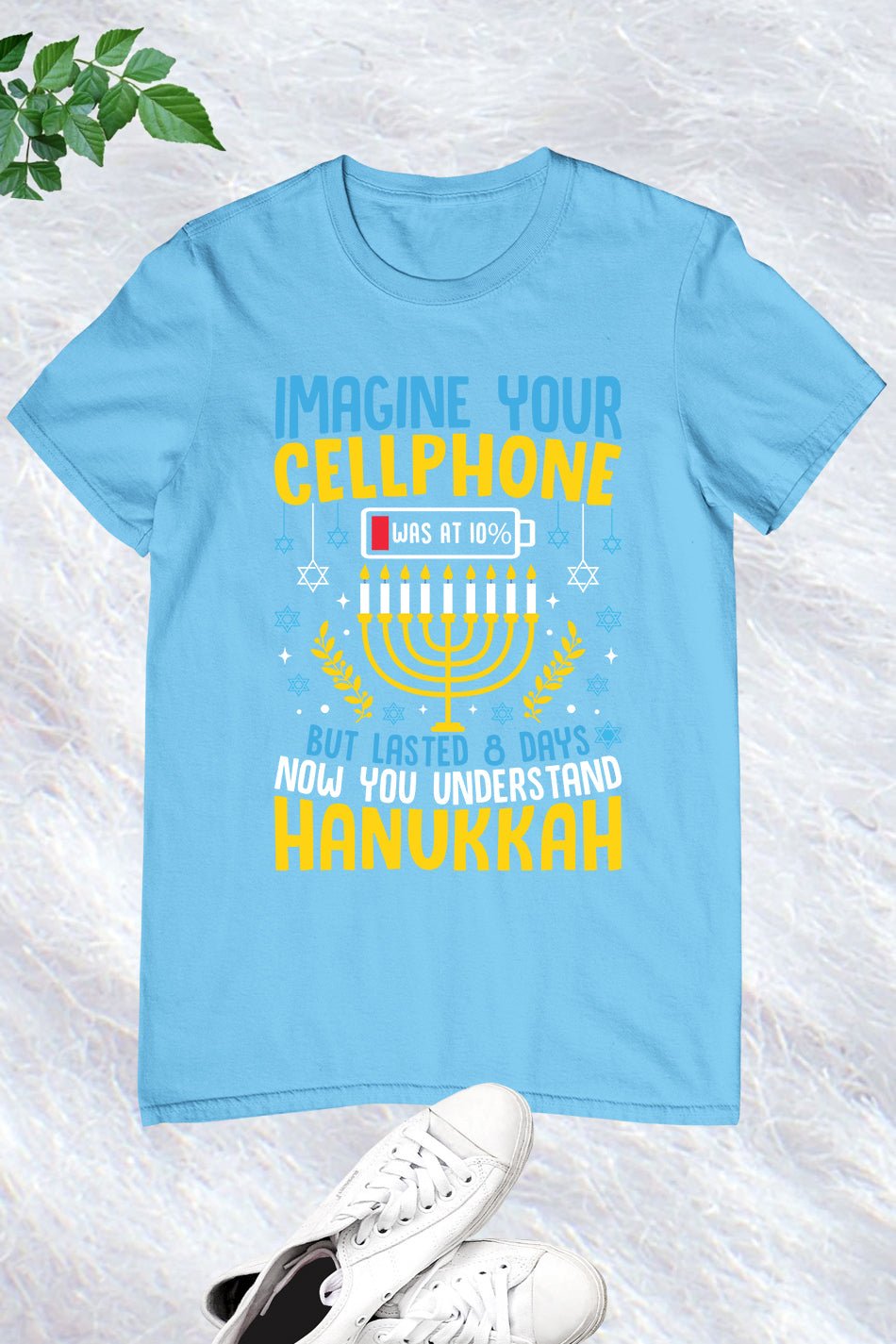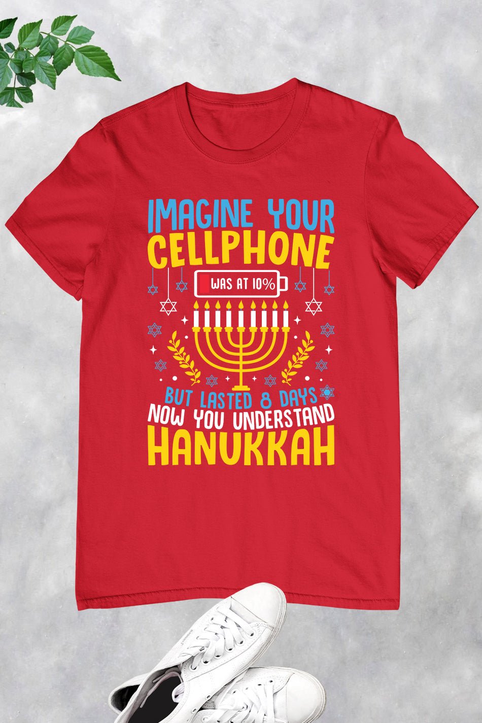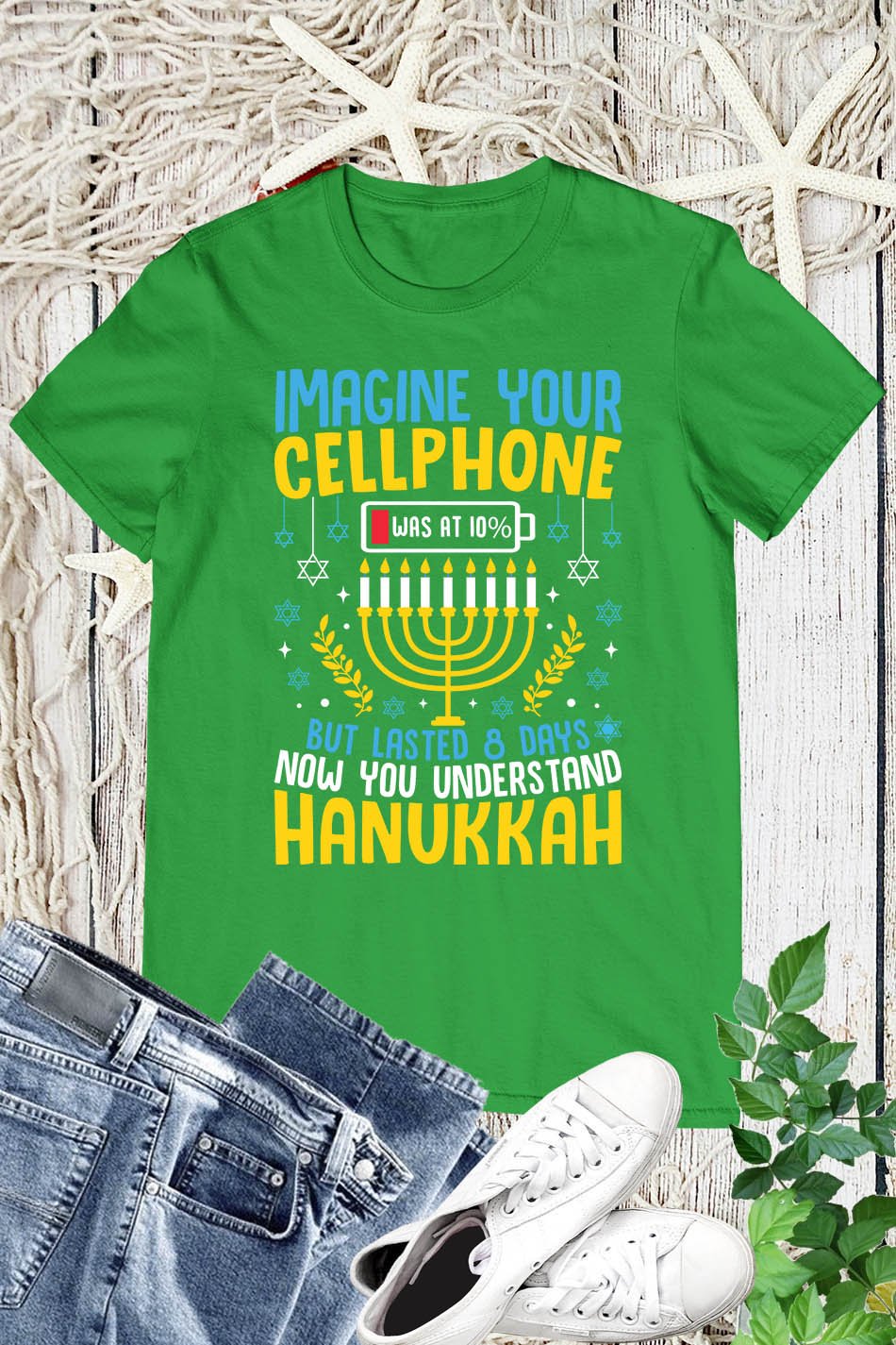 Experience the holiday season with a touch of humor wearing our Imagine Your Cellphone Funny Hanukkah Shirt. This soft and comfortable shirt is the perfect way to add some festive fun to your wardrobe while showing off your love for technology and the holiday of Hanukkah. Stay connected and stylish with this unique shirt.