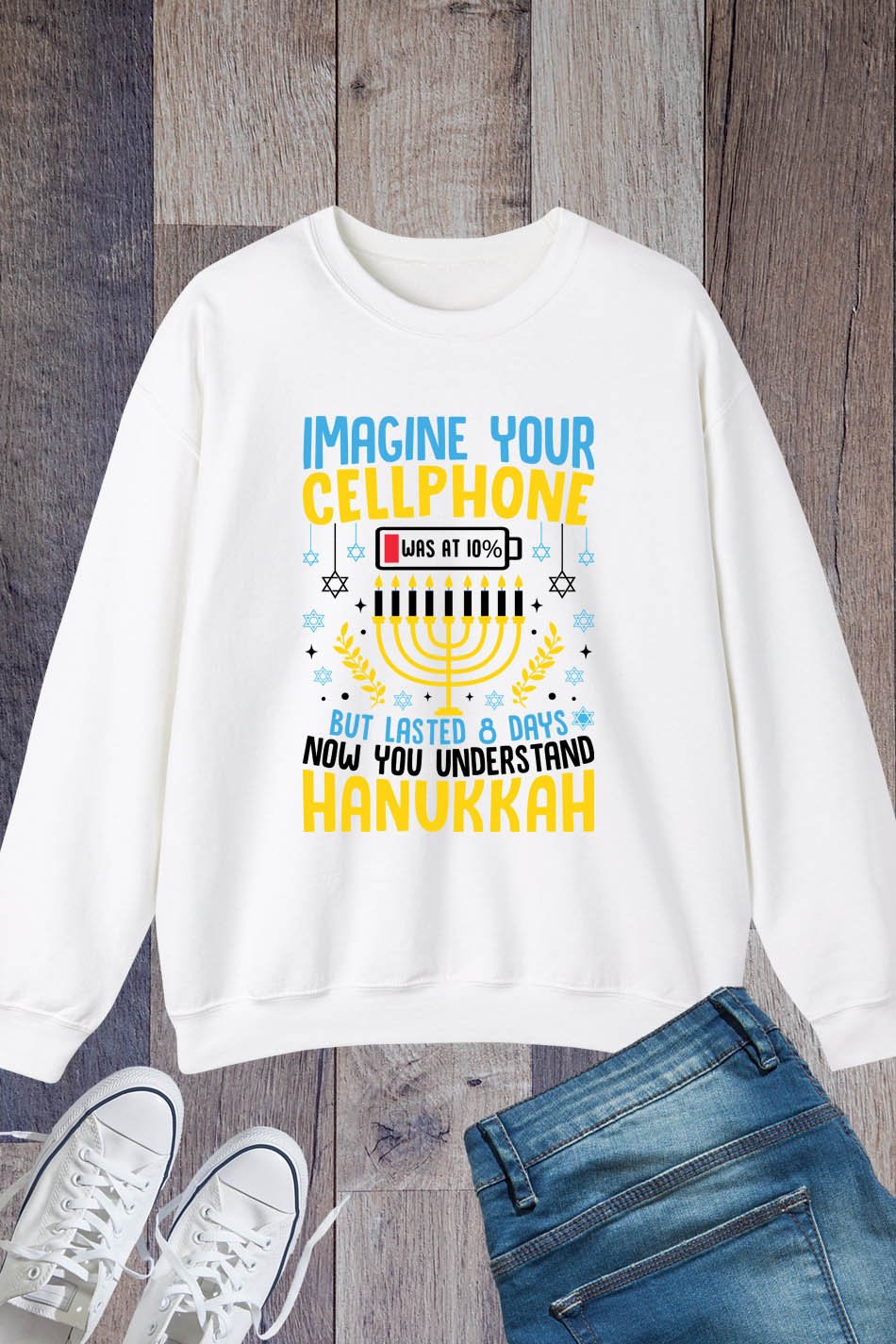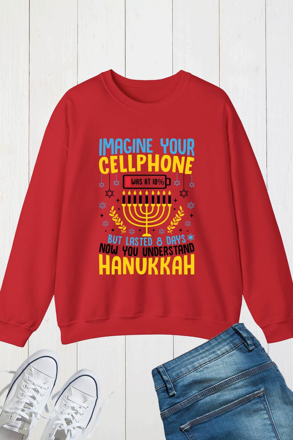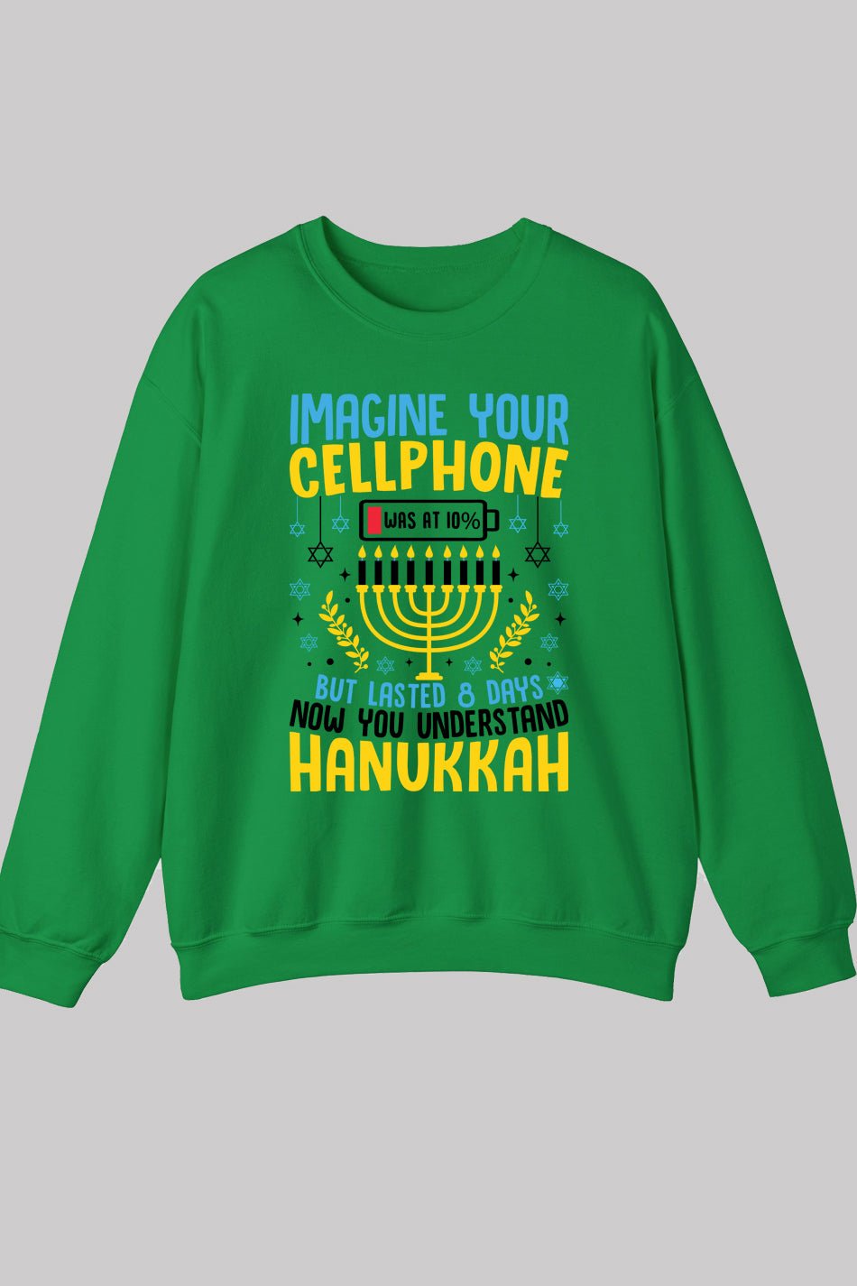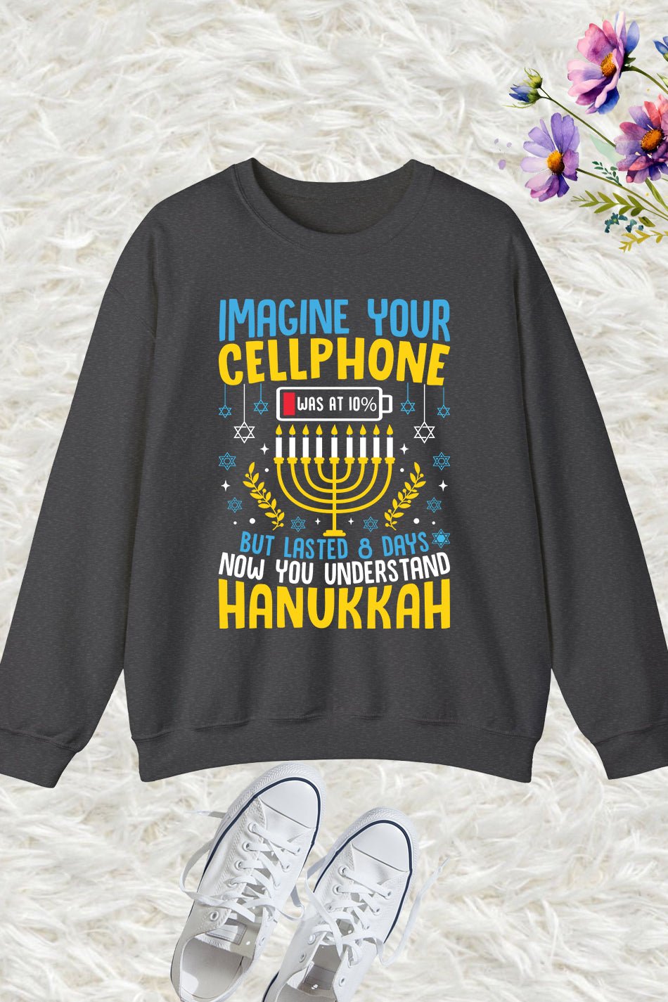 Experience the holiday season with a touch of humor wearing our Imagine Your Cellphone Funny Hanukkah Shirt. This soft and comfortable shirt is the perfect way to add some festive fun to your wardrobe while showing off your love for technology and the holiday of Hanukkah. Stay connected and stylish with this unique shirt.