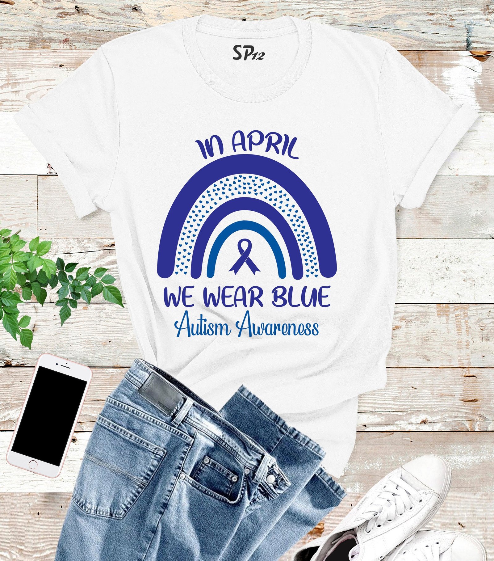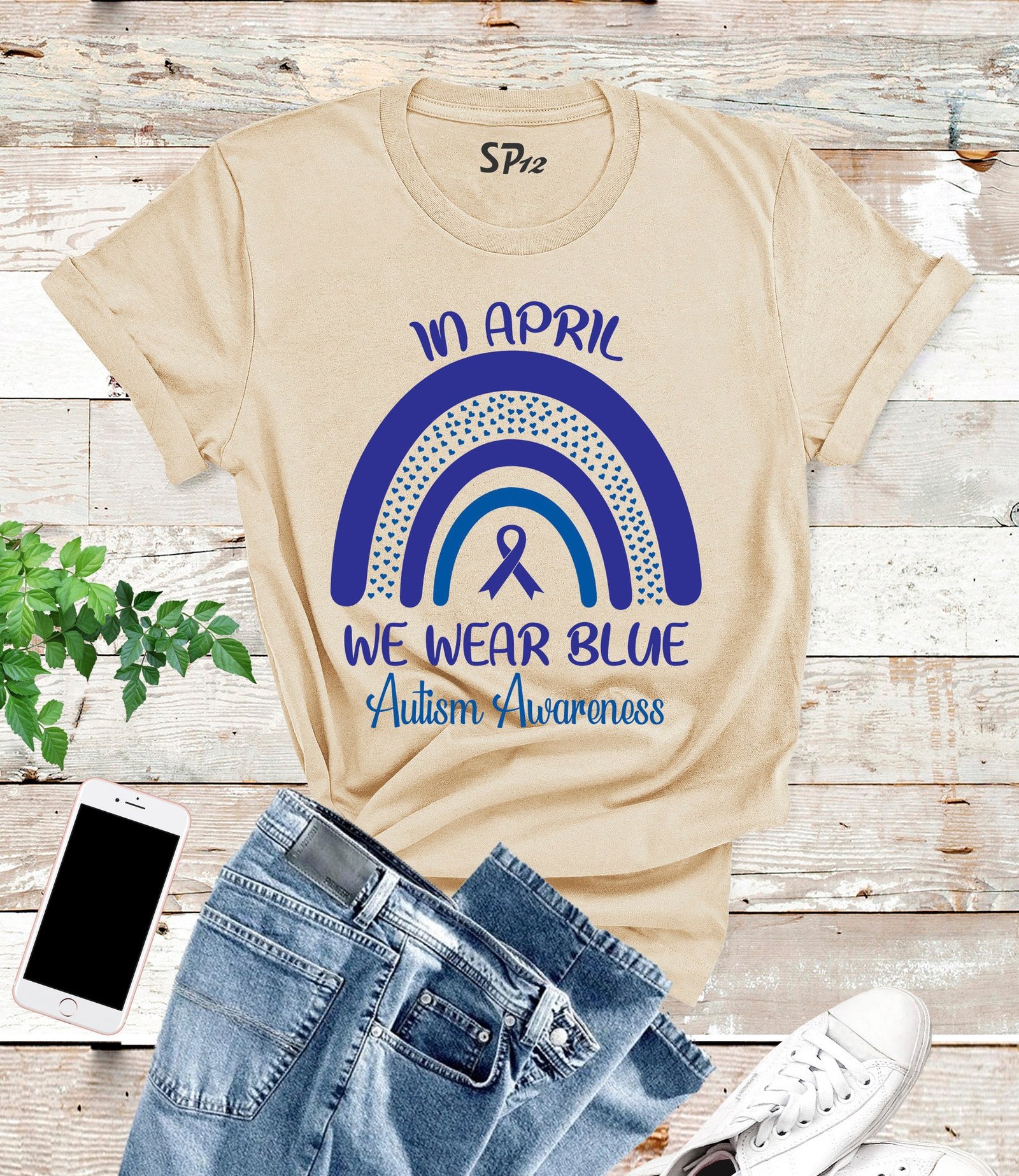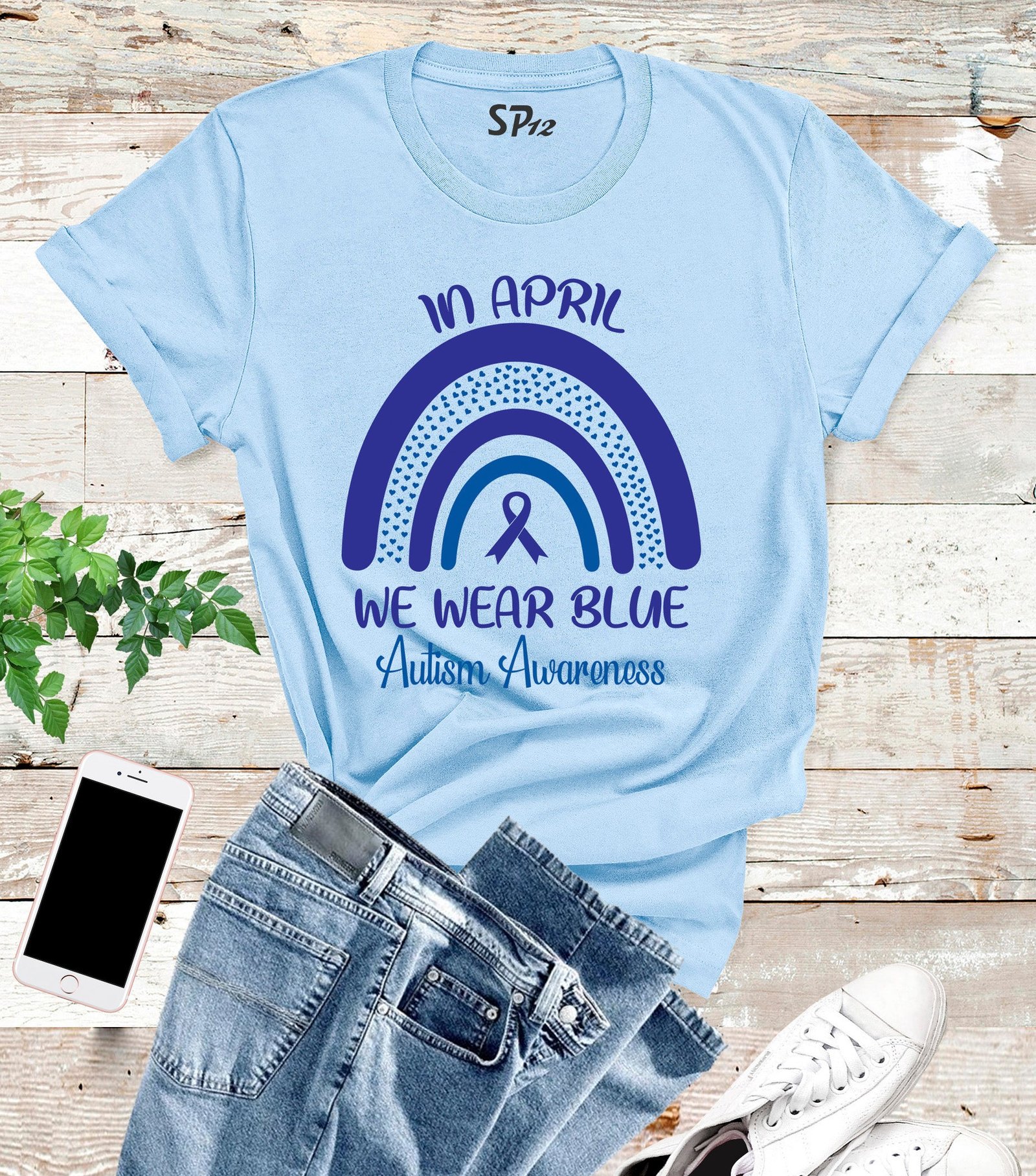 Show your support for Autism Awareness Month with our In April We Wear Blue t-shirt. Made from 100% cotton, this shirt is not only comfortable but also raises awareness for a worthy cause. Wear it proudly and join the movement to spread awareness and acceptance.