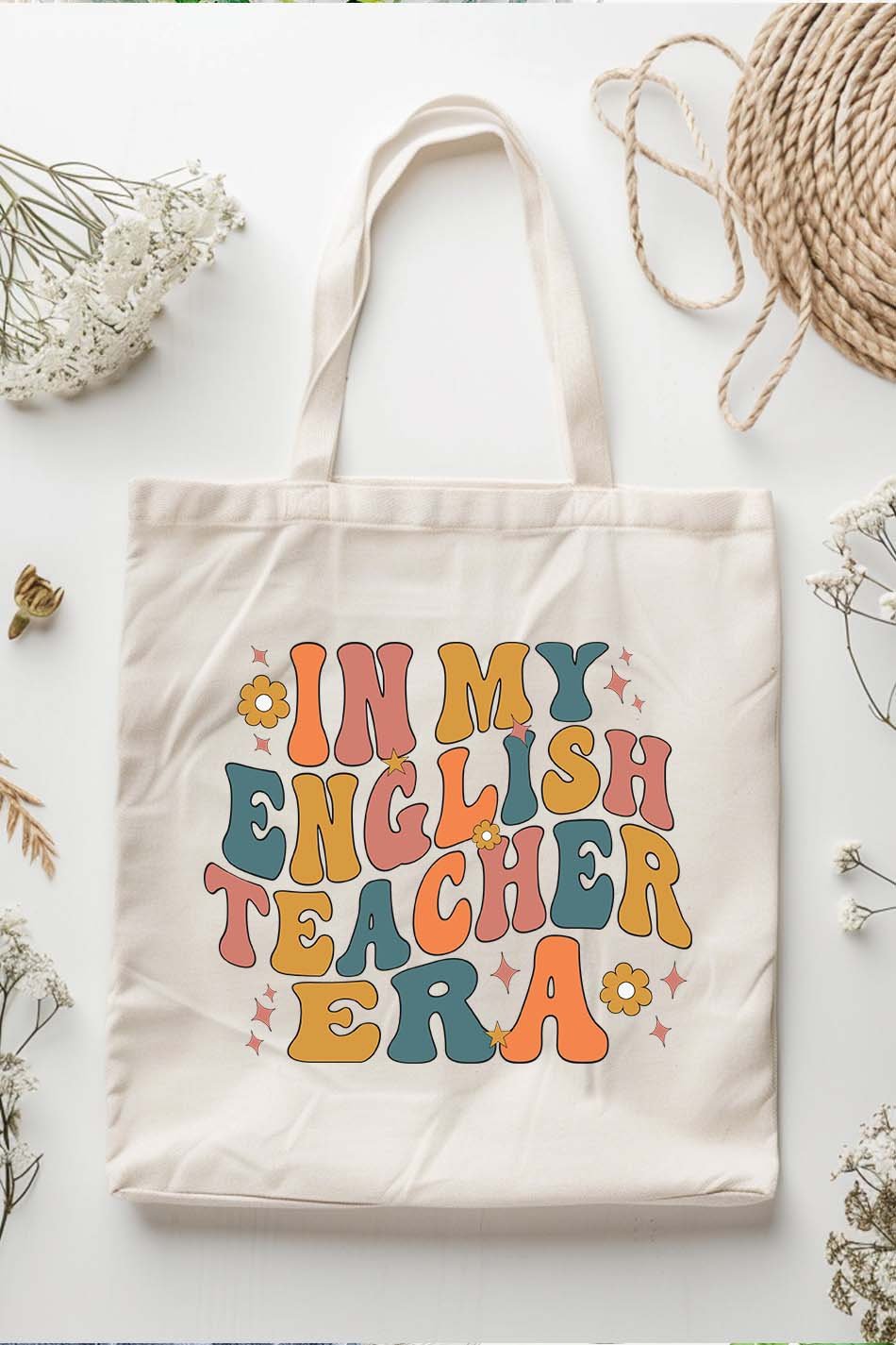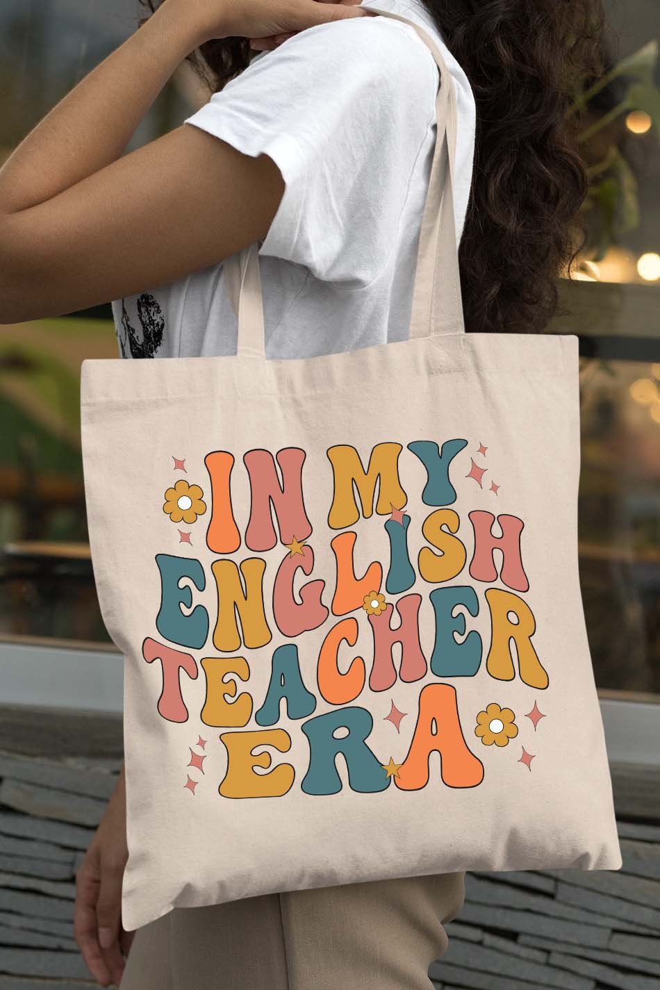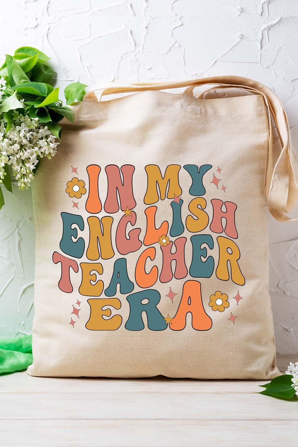 Designed for the language enthusiast, our In My English Teacher Era Tote Bag makes a stylish statement while carrying your essentials. Made from durable material with a spacious interior, this tote will keep you organized while showcasing your passion for the English language.