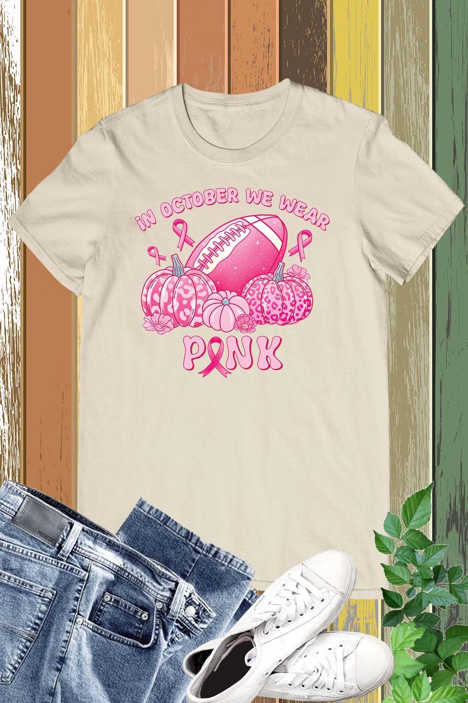 Stay in style and show your support for breast cancer awareness with our “In October We Wear Pink” fall season shirt. Made with high-quality materials, this shirt is comfortable and perfect for everyday wear. 10% of profits are donated to breast cancer research. Join the fight today!