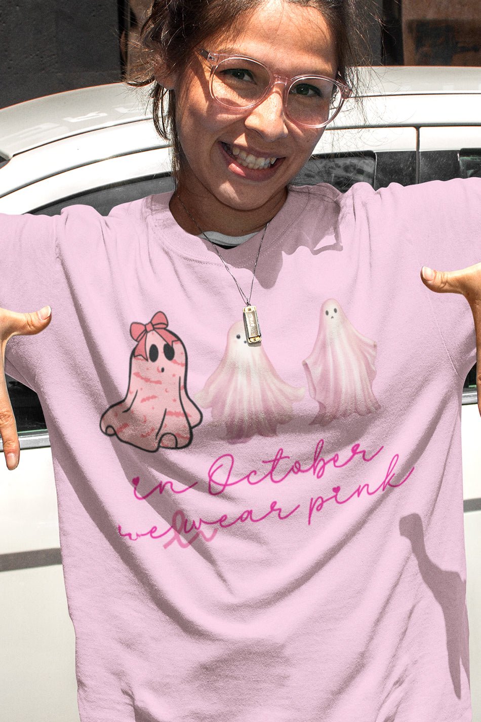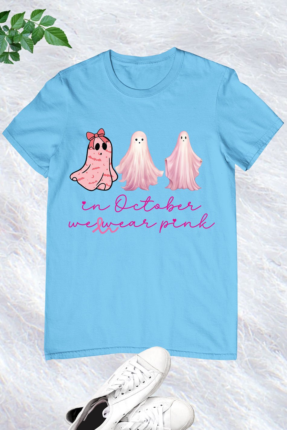 Celebrate Breast Cancer Awareness Month with our In October We Wear Pink Ghosts T Shirt. Show your support and spread awareness while looking stylish and comfortable. Made with high-quality materials and featuring a unique design, this shirt is perfect for survivors, fighters, and supporters alike. Join the movement and wear pink ghosts proudly.