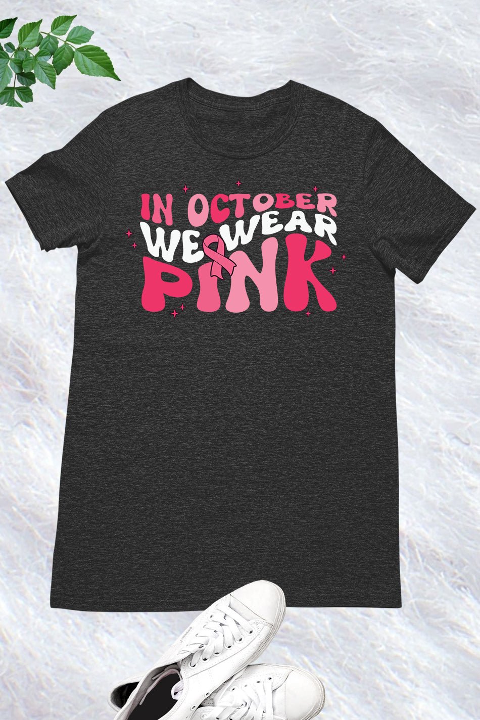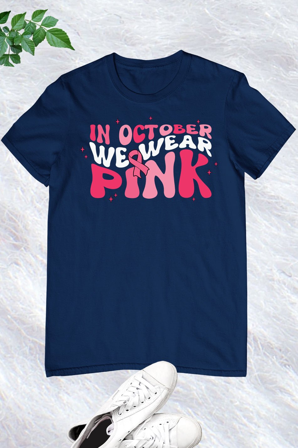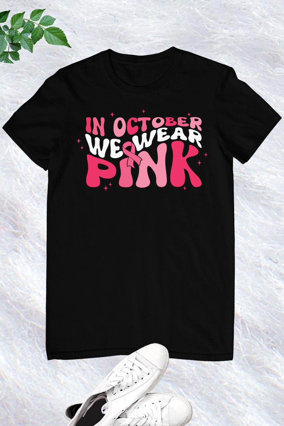 This specially designed t-shirt is perfect for Breast Cancer Awareness month. Show your support and raise awareness by wearing the “In October We Wear Pink” t-shirt. Made with high quality fabric and a powerful message, this shirt is a must-have for anyone looking to make a positive impact.