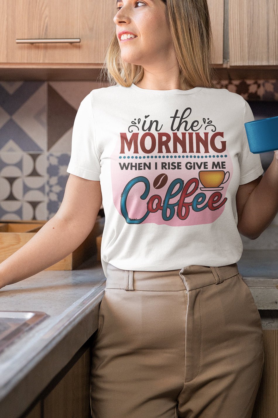 Get through your mornings with ease in our “In The Morning When I Rise Give Me Coffee” shirts. Made for coffee lovers, these shirts will keep you comfortable and stylish while you fuel up for the day ahead. Wake up and seize the day with our caffeine-inspired shirts.