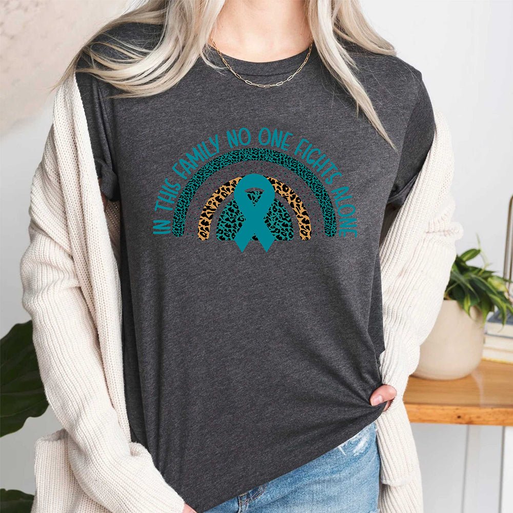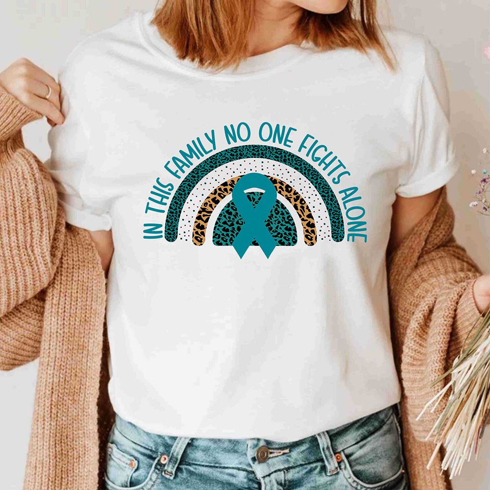 In This Family No one Fights Alone Rainbow Cancer Survivor T Shirt