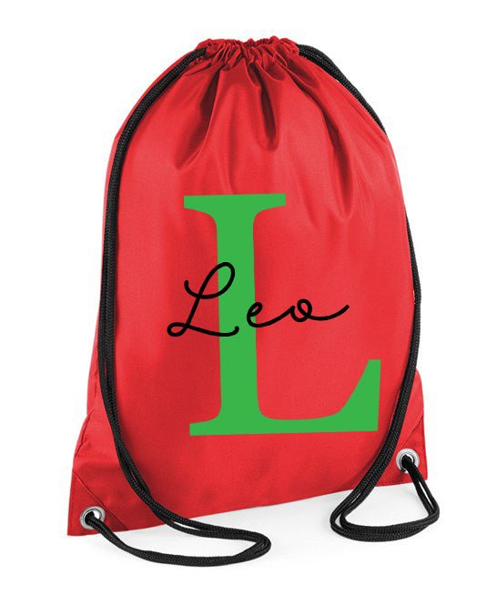Crafted with high-quality materials, this gym drawstring bag features your personalized initial letter and name, giving it a unique touch. Perfect for carrying your gym essentials, this bag is durable and stylish. Stay organized and stand out with this personalized gym bag.