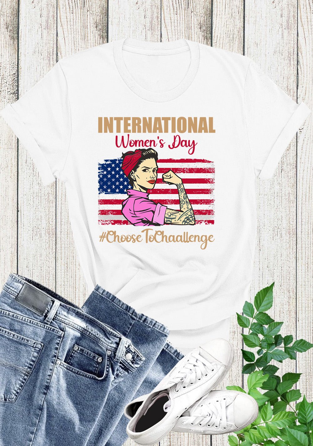 “Be a part of the celebration of women empowerment with our International Women’s Day USA T shirt! Made with high-quality materials, this t-shirt boldly and proudly displays your support for women’s rights and gender equality. Wear it with pride and join us in the fight for a better tomorrow!”