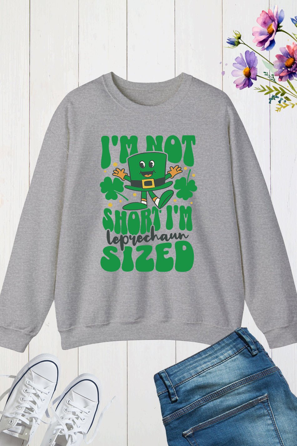 Upgrade your wardrobe with our Irish Leprechaun Sweatshirt! Made with comfortable, high-quality material, this sweatshirt features a unique design that showcases your love for Irish culture. Perfect for St. Patrick’s Day or any day, this sweatshirt is sure to keep you warm and stylish. Show off your heritage with pride.