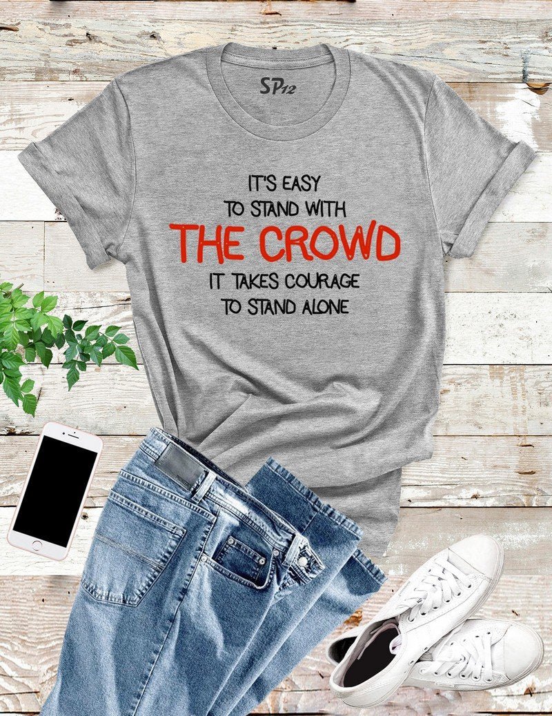 It’s Easy To Stand With The Crowd T Shirt is printed with the message Stand With The Crowd. Fan of motivational quotes or funny memes then you will like our slogan tshirt. These soft cotton tshirts are stylish and comfy. Funny t shirts that can give someone a laugh or sparkling smile and happy time. This slogan t shirt will get an attention and compliment.