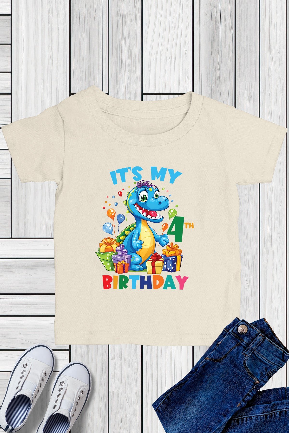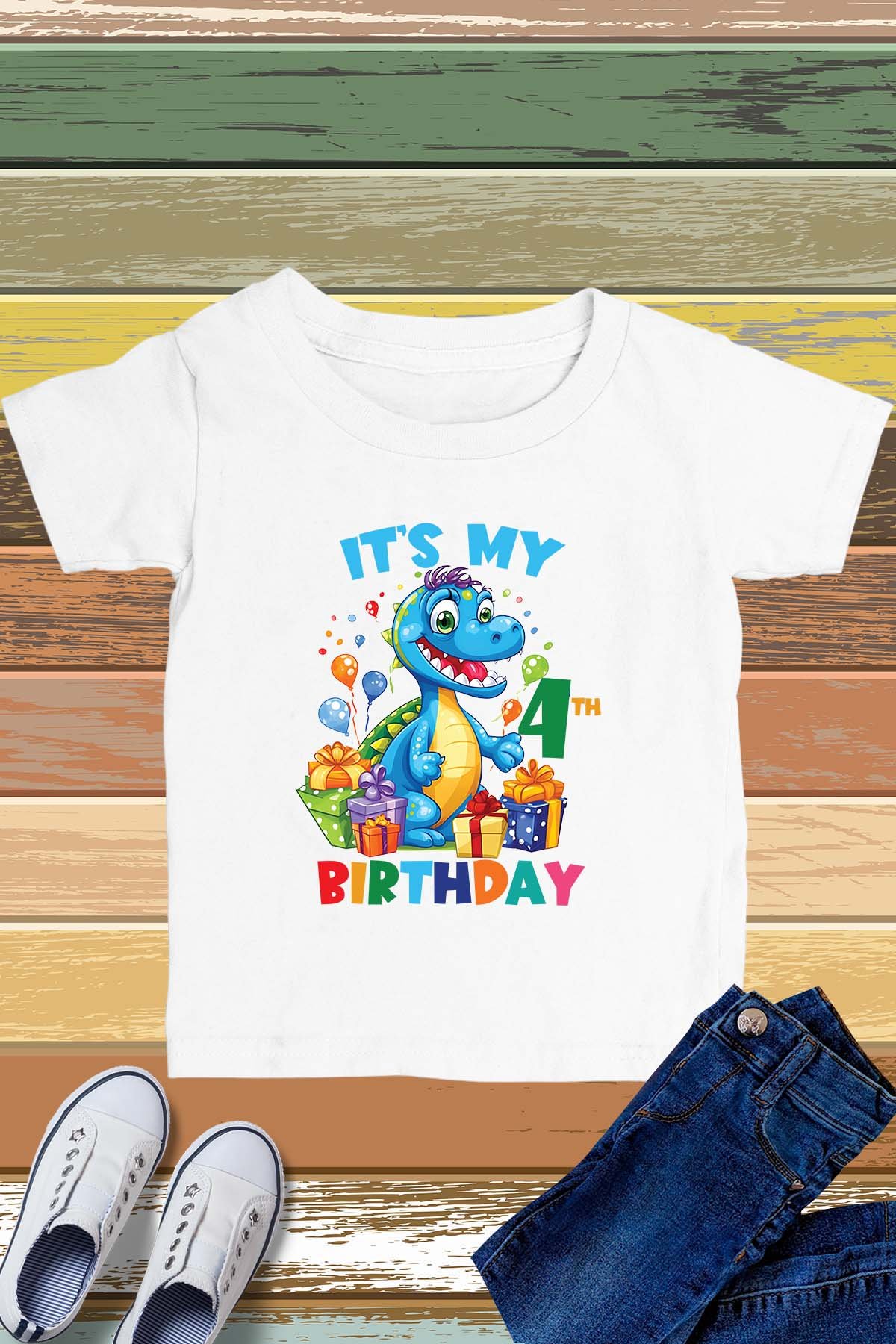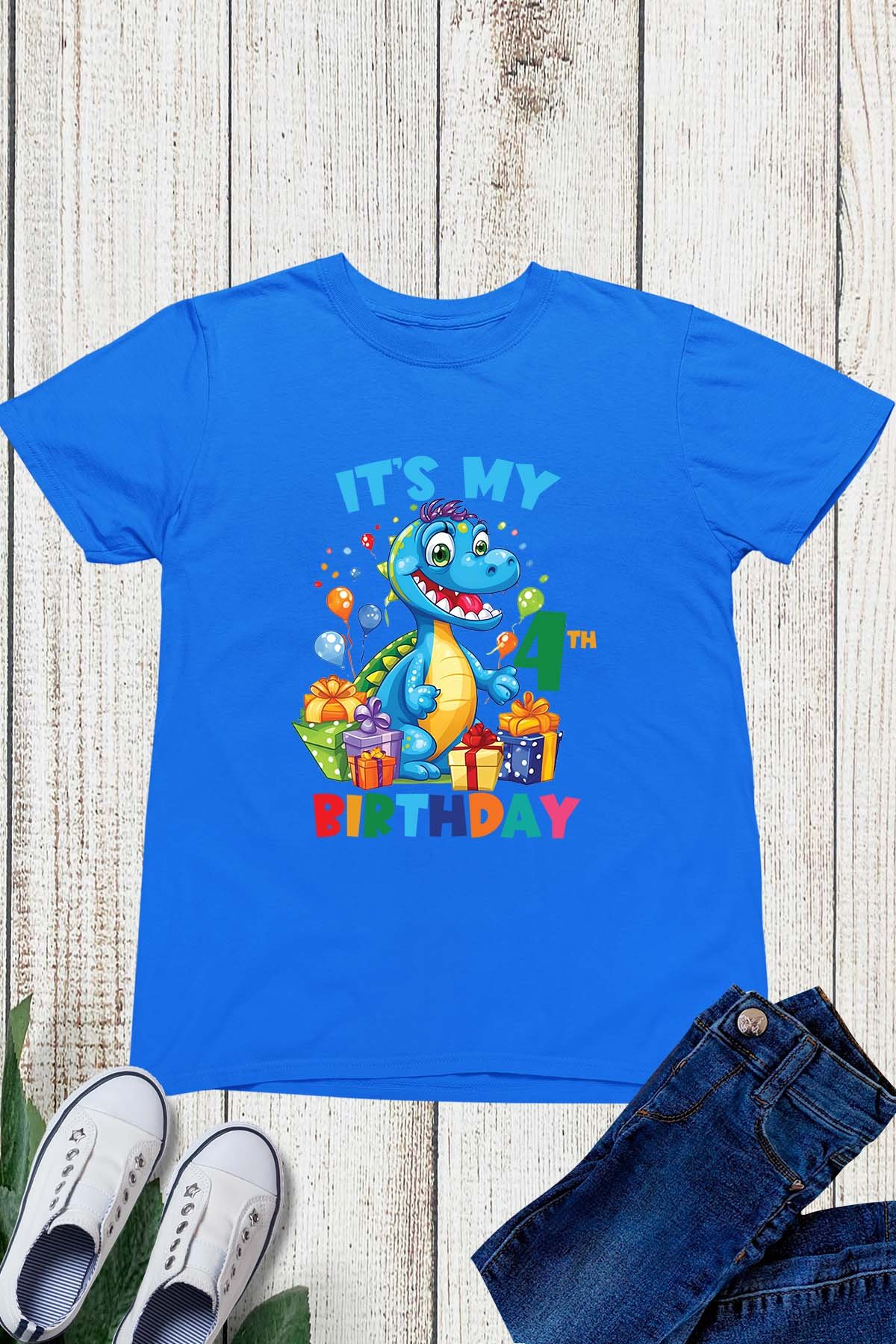 Celebrate your little one’s 4th birthday in style with our It’s My 4th Birthday Dinosaur Theme Shirt! Made with high-quality materials, this shirt features a fun dinosaur design that is perfect for any birthday party. Show off your child’s age while also keeping them comfortable and stylish. Don’t miss out on this must-have birthday shirt!