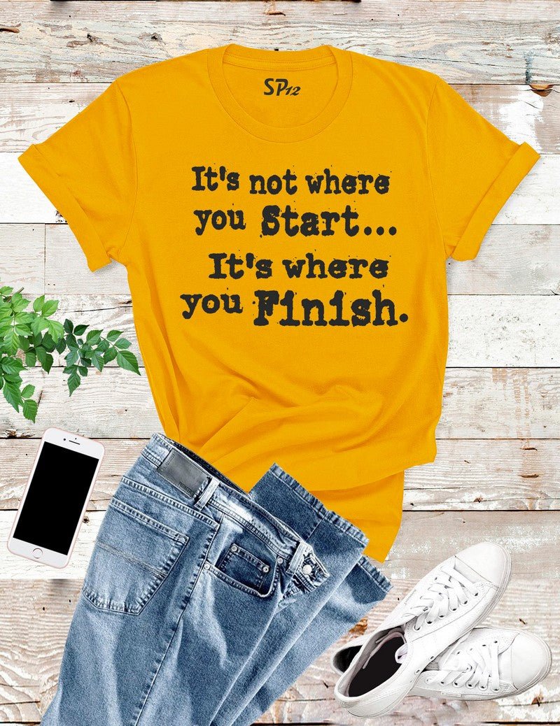 It’s Not Where You Start T Shirt is printed with the message. Fan of motivational quotes or funny memes then you will like our slogan tshirt. These soft cotton tshirts are stylish and comfy. Funny t shirts that can give someone a laugh or sparkling smile and happy time. This slogan t shirt will get an attention and compliment.