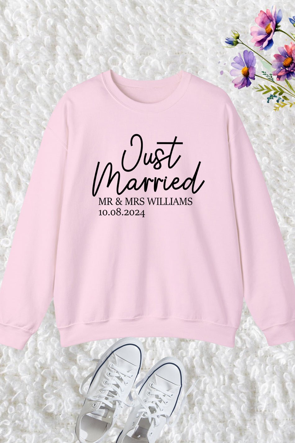 Stand out on your special day with our Just Married Date Custom Sweatshirt. Personalize it with your wedding date and make it a one-of-a-kind keepsake. Made with high-quality material, this sweatshirt will keep you warm and comfortable while showcasing your new marital status.