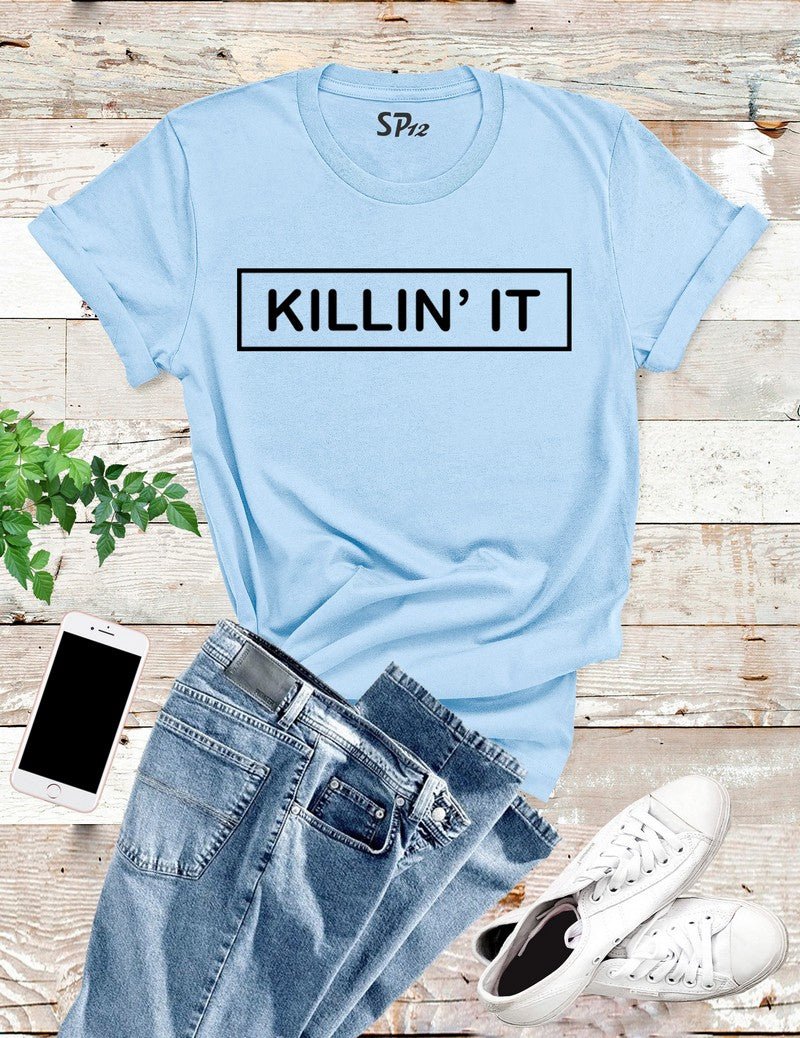 Killin It T Shirt is printed with the message Killin.Fan of motivational quotes or funny memes then you will like our slogan tshirt. These soft cotton tshirts are stylish and comfy. Funny t shirts that can give someone a laugh or sparkling smile and happy time. This slogan t shirt will get an attention and compliment.