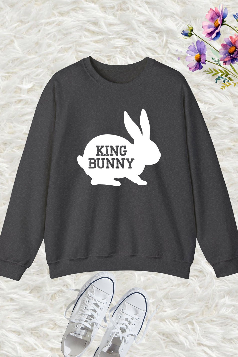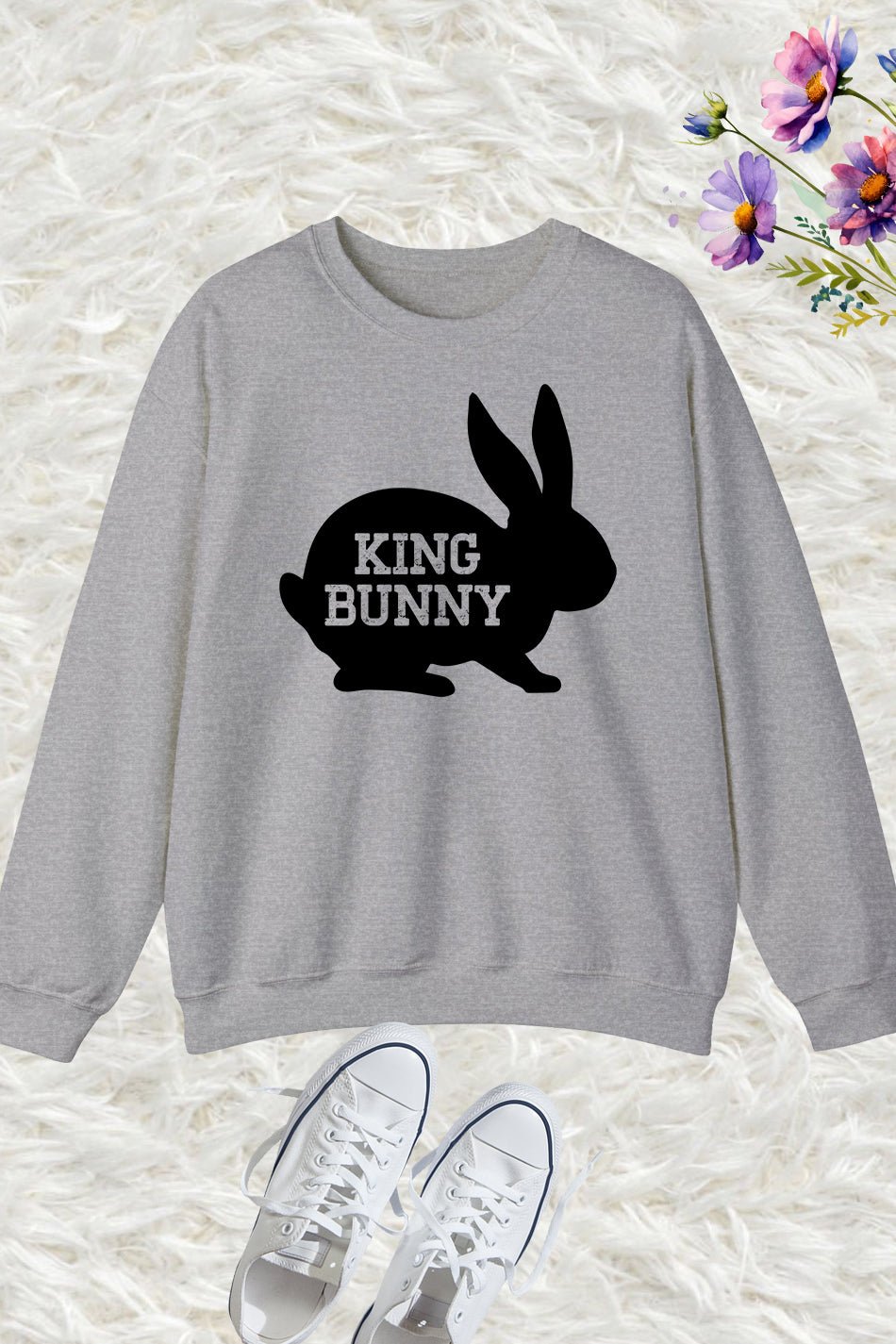 Unleash your inner royalty with our King Bunny Sweatshirt! Made with high-quality materials, this sweatshirt is both comfortable and stylish. With its unique design featuring a crowned bunny, you’ll stand out in any crowd. Perfect for those who want to make a statement and feel like a king. Upgrade your wardrobe today!