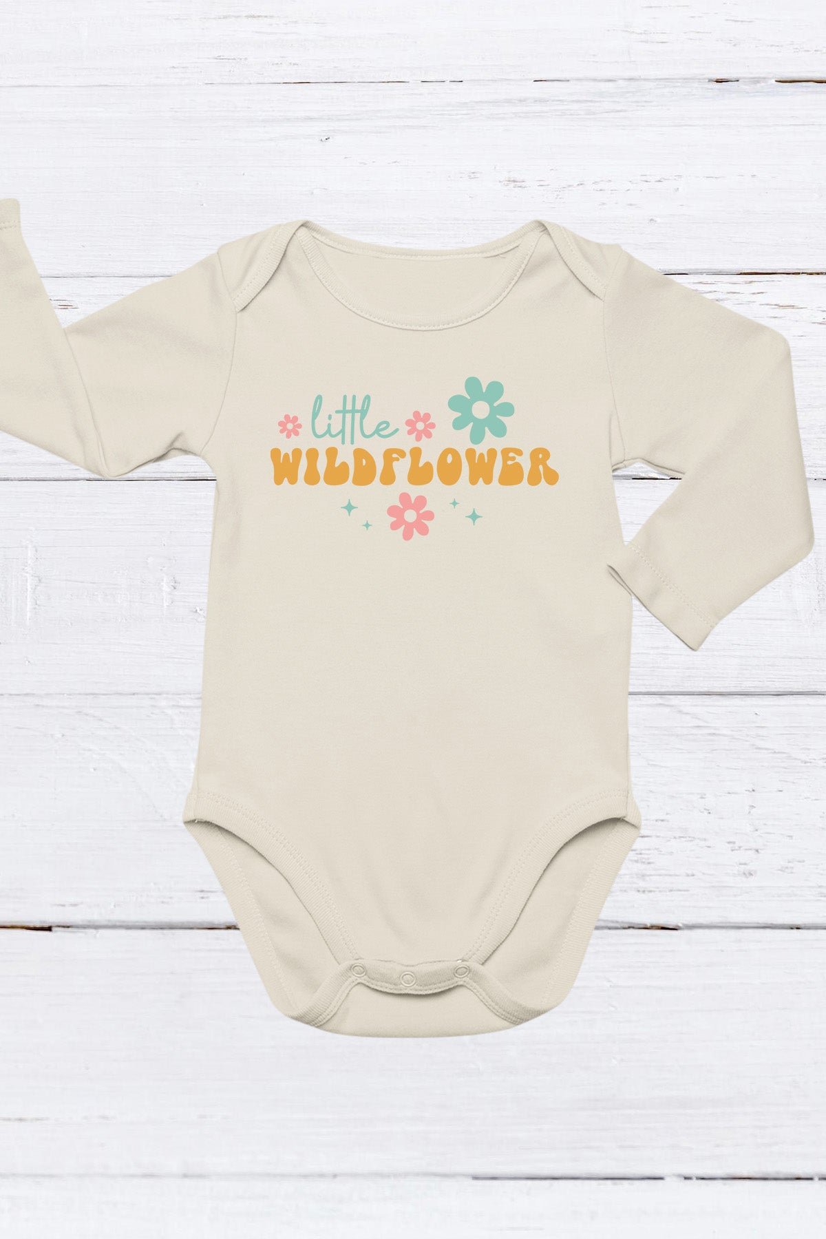 Introduce your little one to the wonders of nature with our Little Wildflower Baby Onesie. Made with soft and breathable fabric, this onesie features a charming wildflower design that will delight both parent and child. Let your baby bloom in comfort and style.